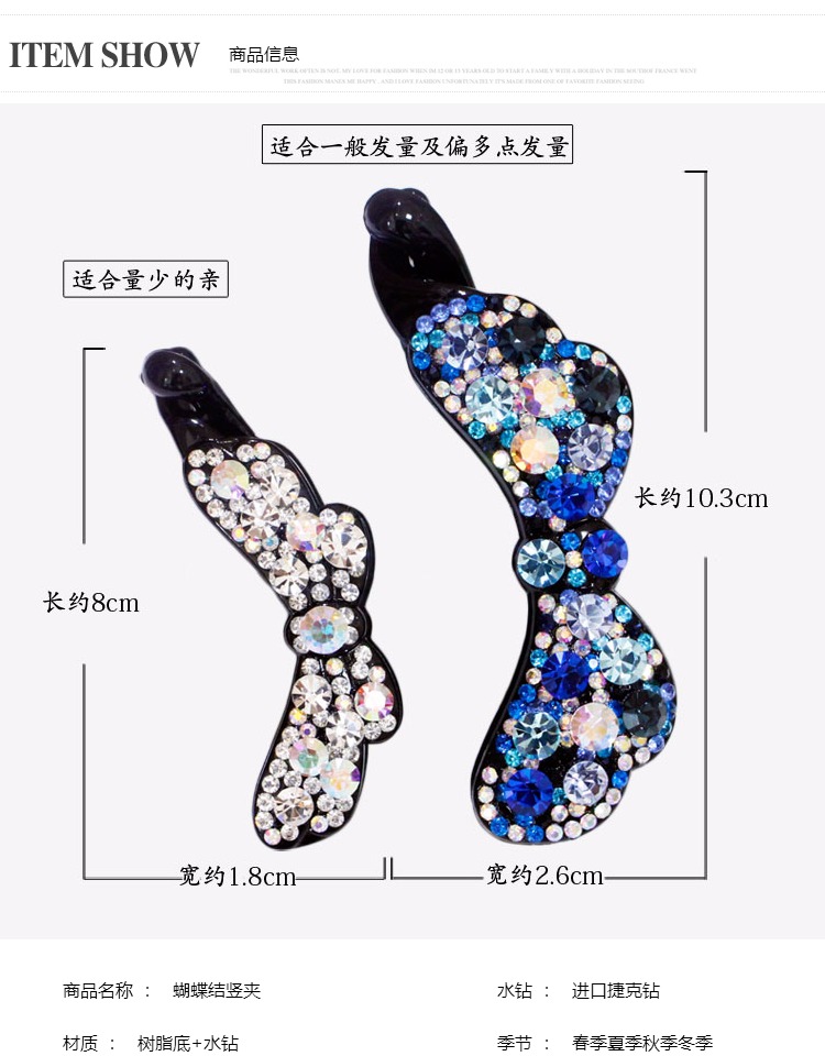 韓式水鉆香蕉夾發飾品 韓國大號豎夾小號馬尾夾發夾扭夾發卡頭飾1入