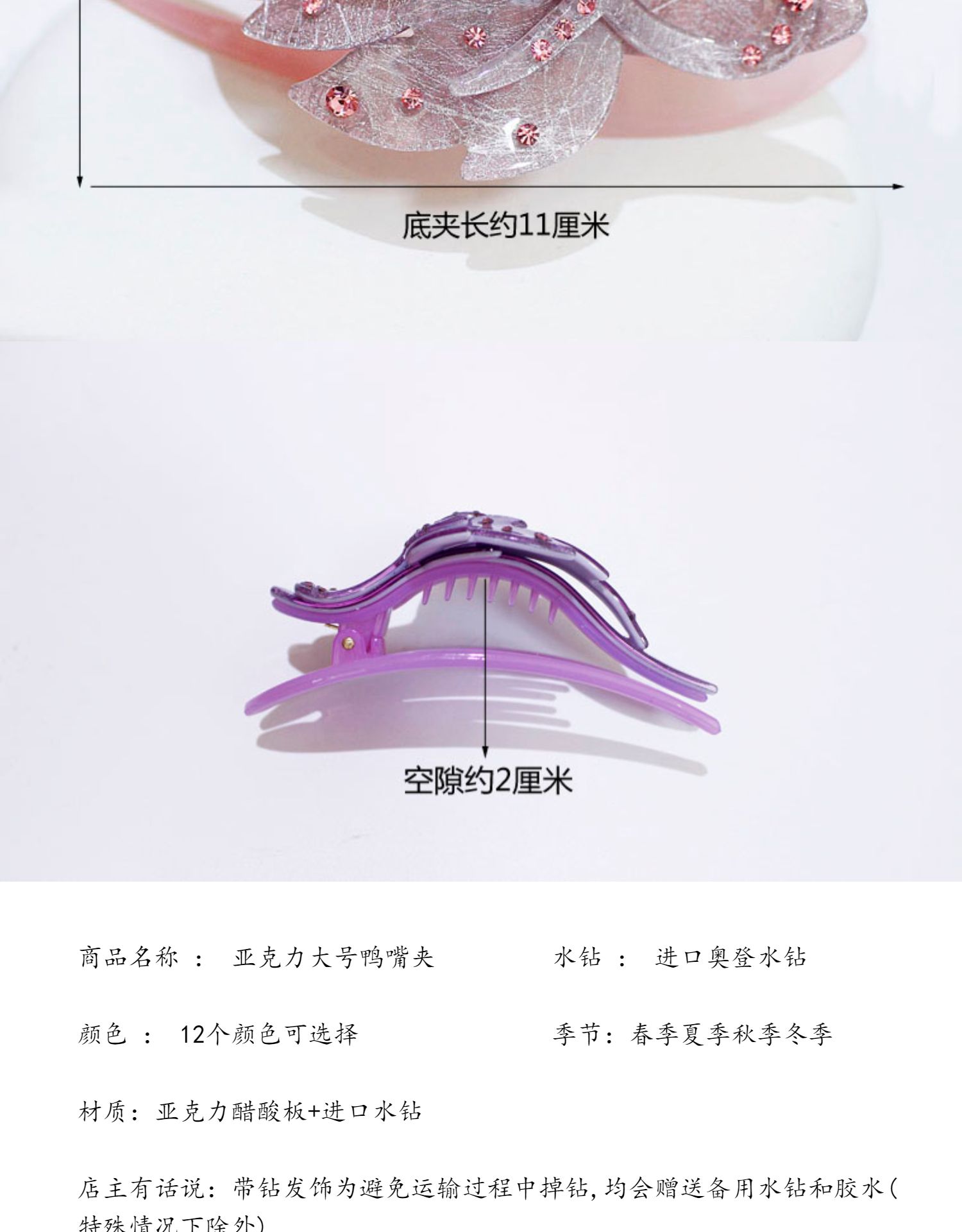 韓國水鉆發夾頭飾亞克力大號鴨嘴夾盤發發夾優雅馬尾發卡發飾飾品1入