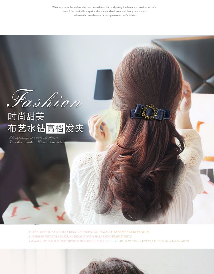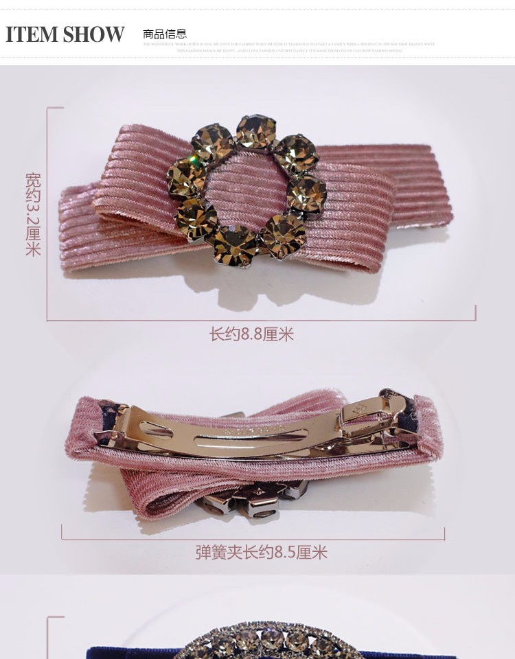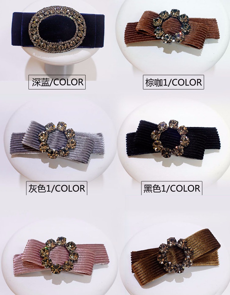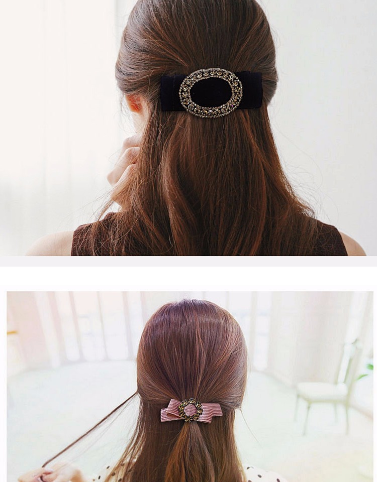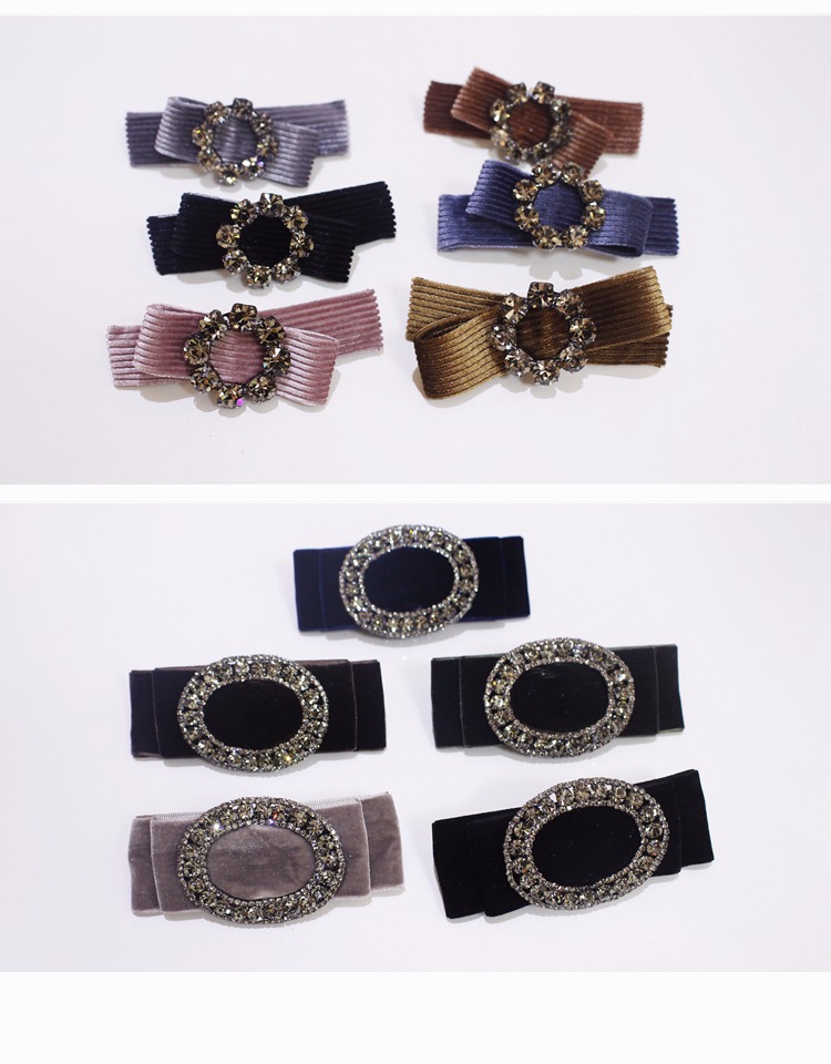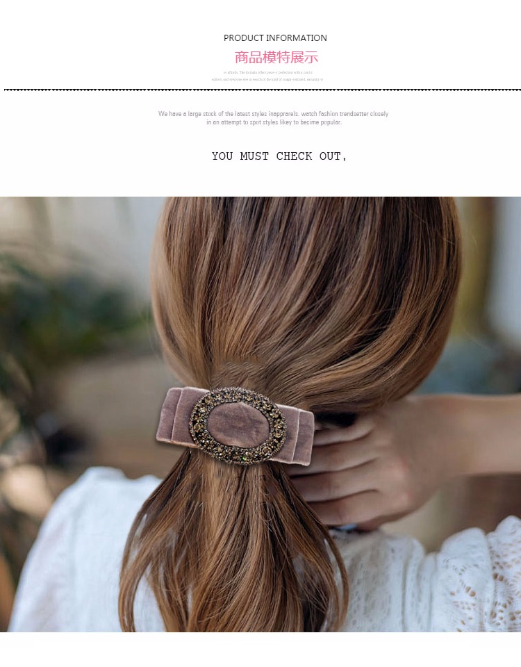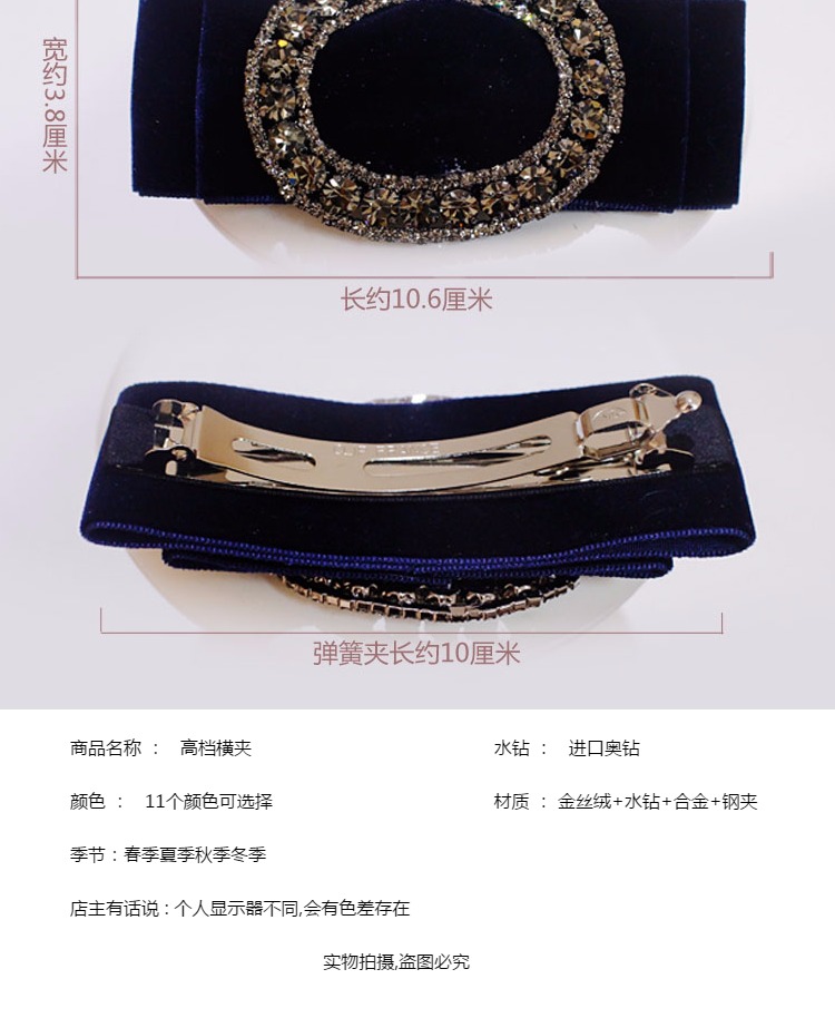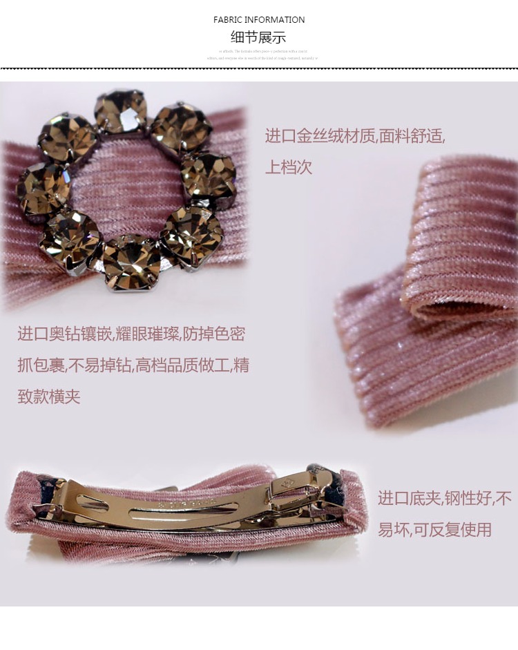韓版發飾飾品 金絲絨橫夾水鉆頂夾簡約彈簧夾發夾馬尾扣夾女頭飾1入