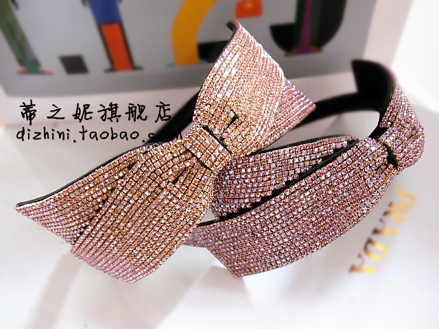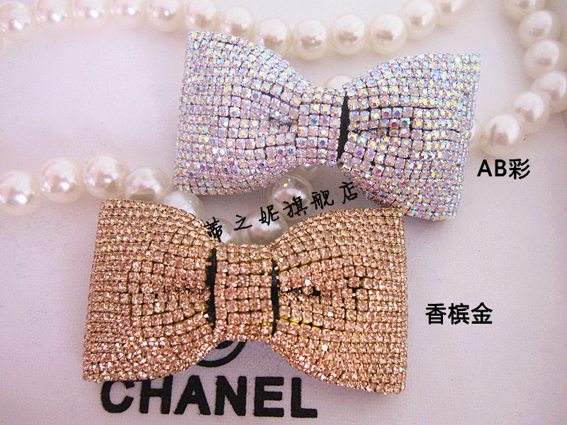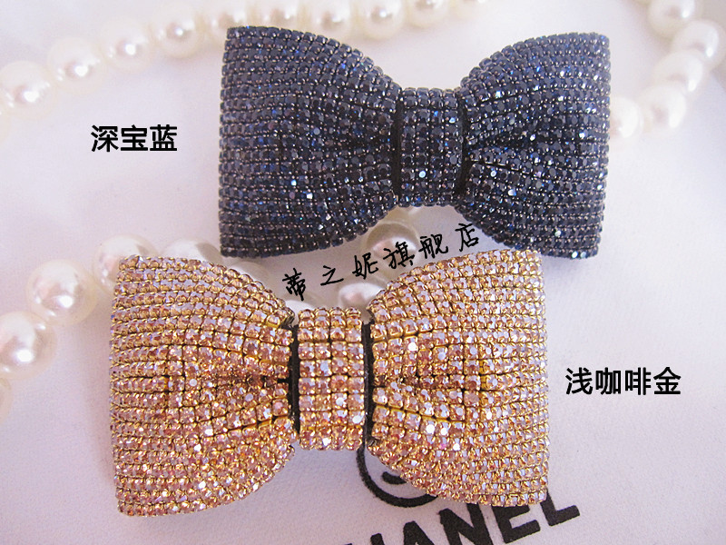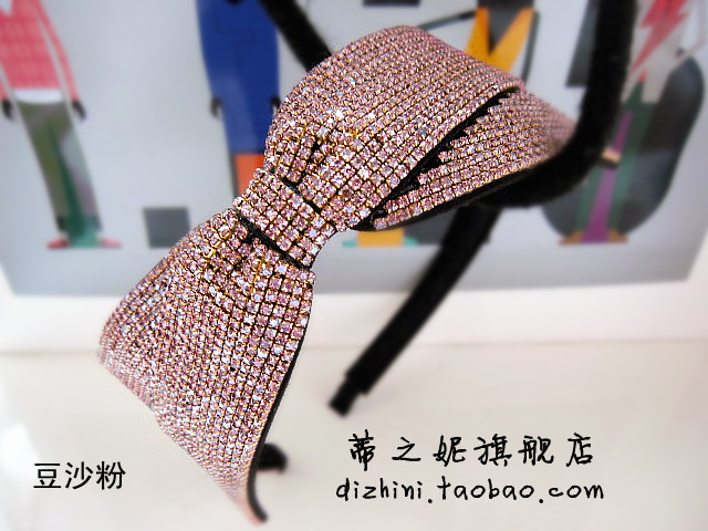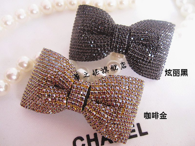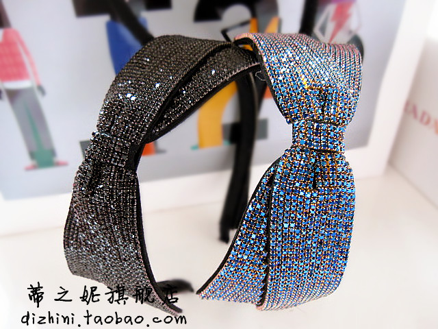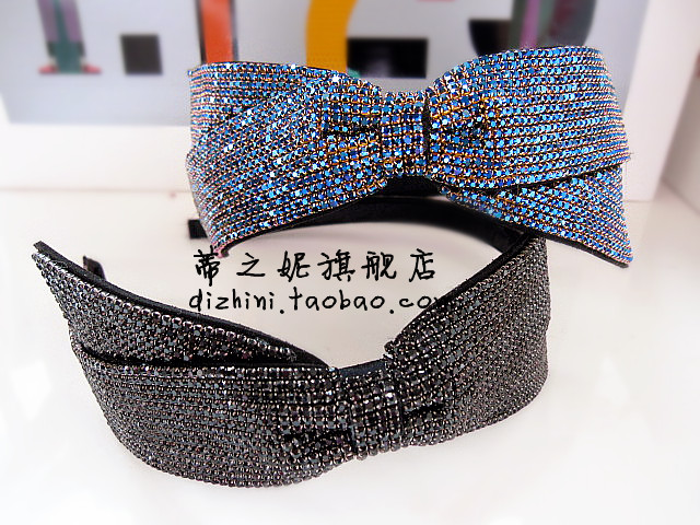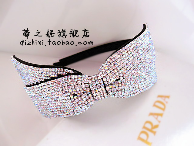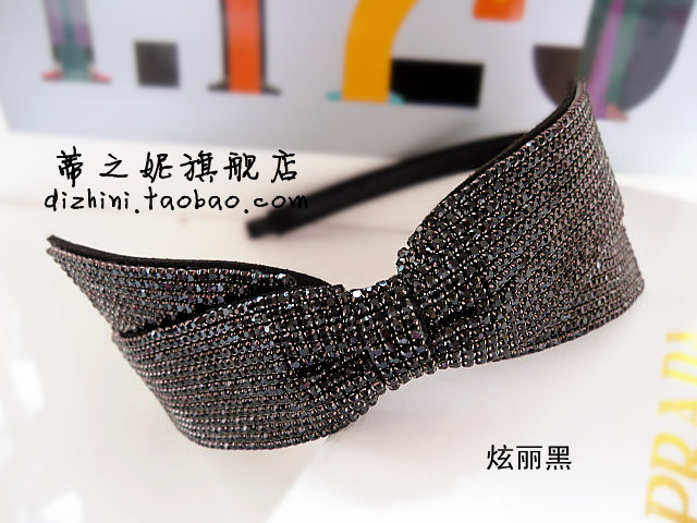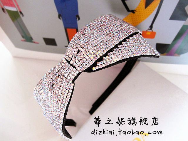 韓國夏季頭飾 韓版水鉆大蝴蝶結滿鉆發箍發卡寬邊頭箍壓發飾發夾1入