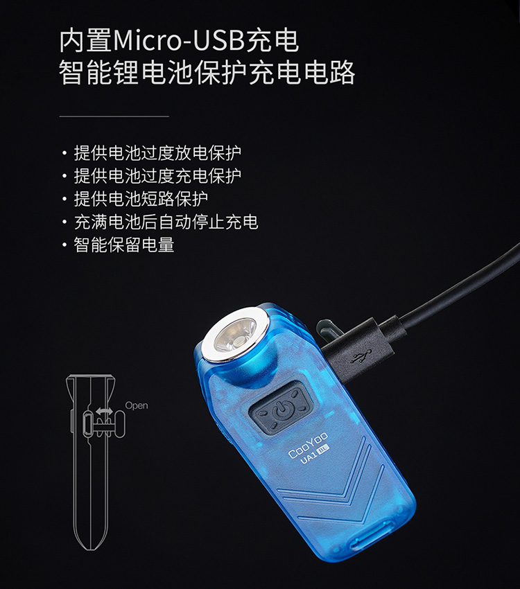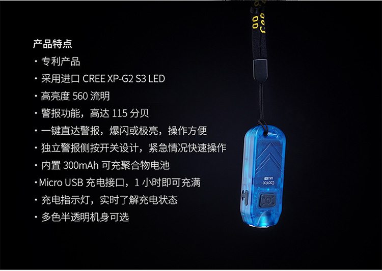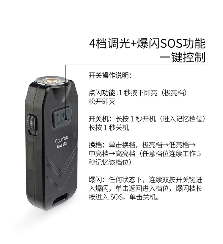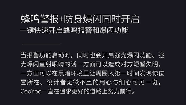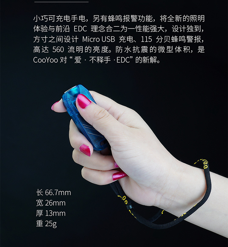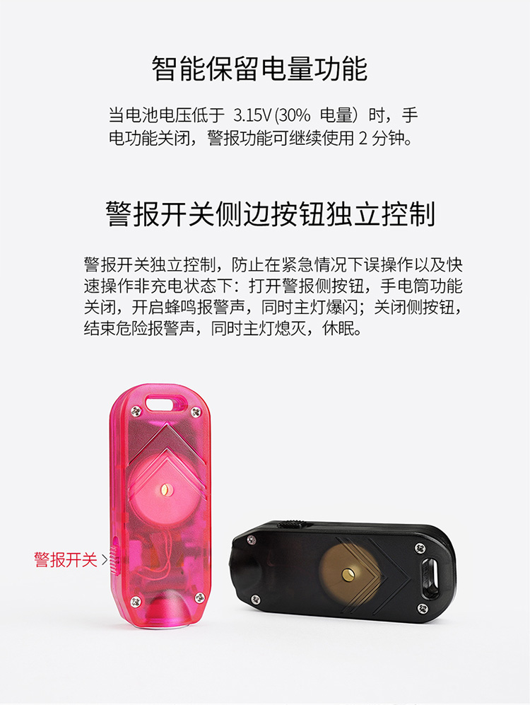 酷友 CooYoo UA1 迷你EDC強光手電/女子防身防狼器夜跑報警器1入
