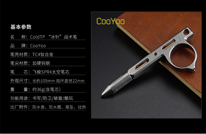 酷友CooYoo 冰針戰術筆 鈦合金鎢鋼頭防衛 破窗求生工具COLD TP1入