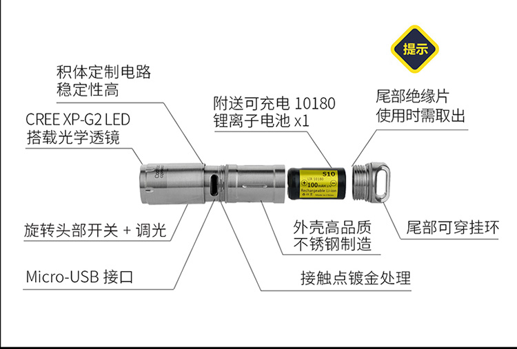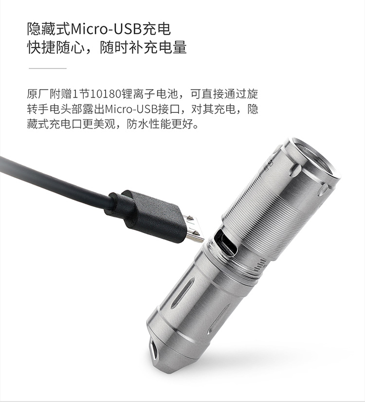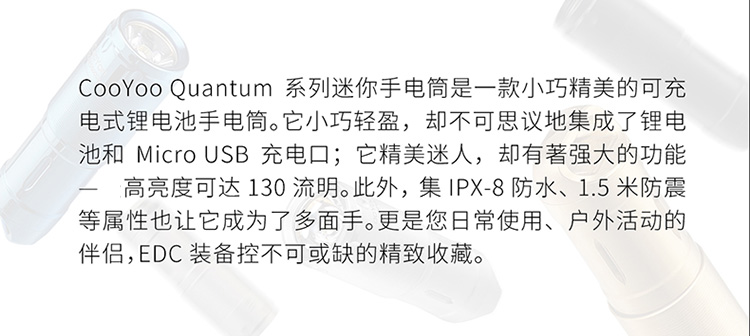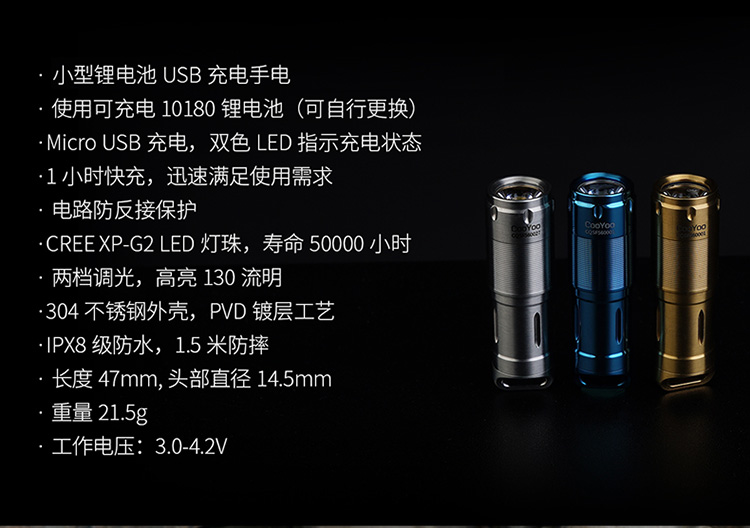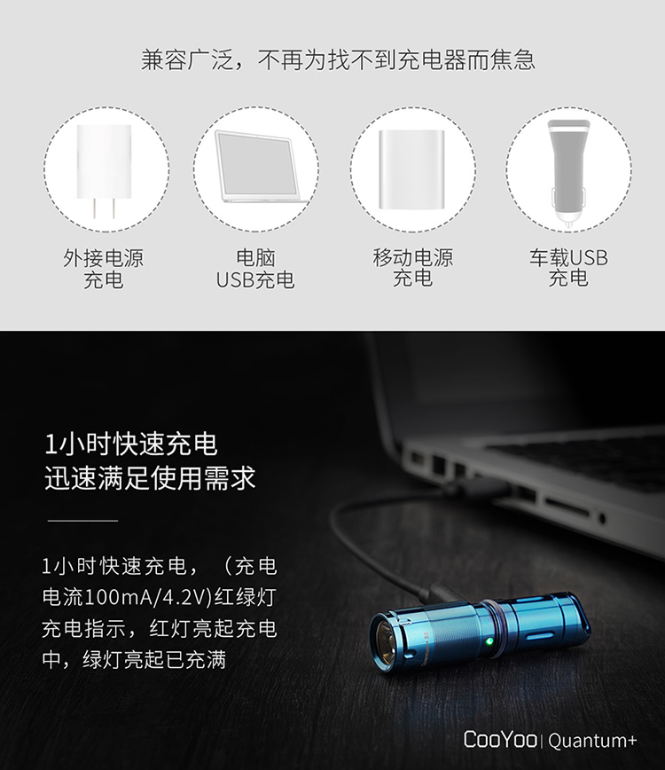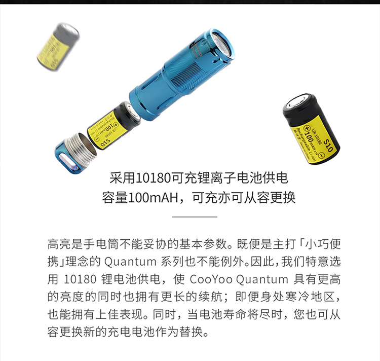 酷友CooYoo量子+新版 USB充電10180小手電筒 迷你LED強光鑰匙扣燈1入