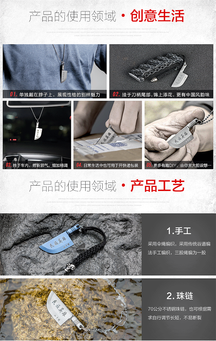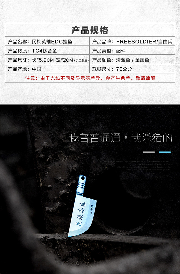 自由兵民族英雄edc刀迷你軍迷鈦合金多功能項鏈車載擺件收藏把玩1入