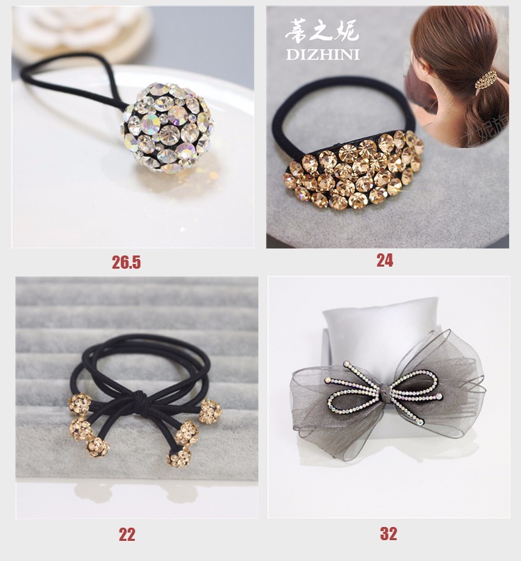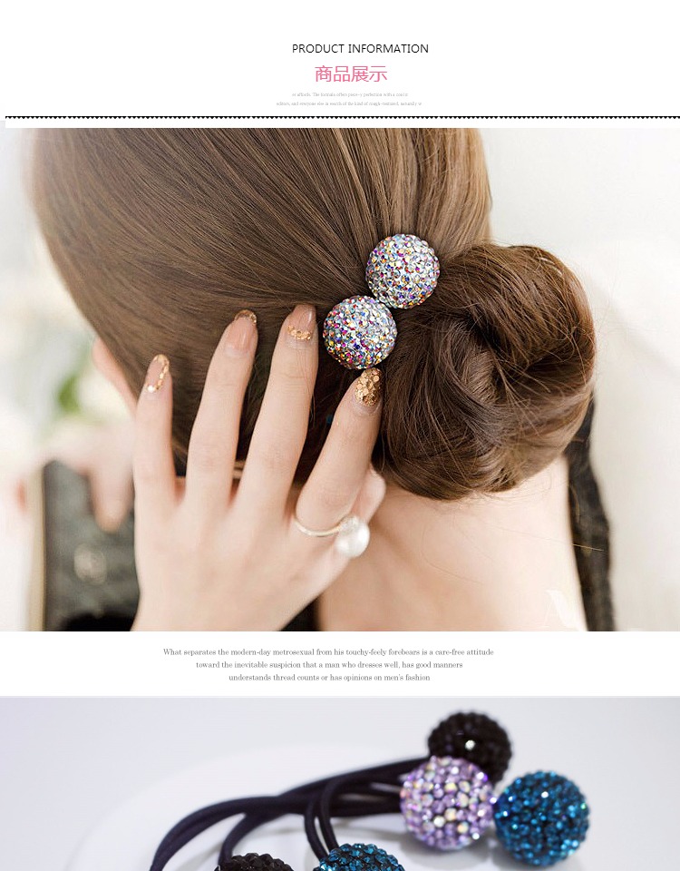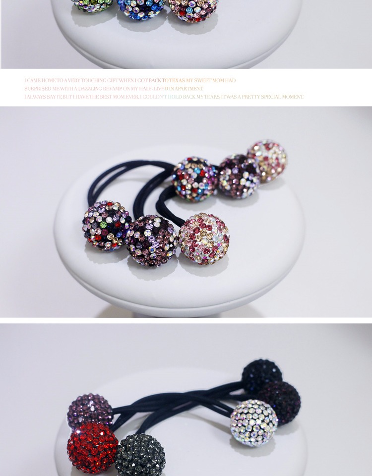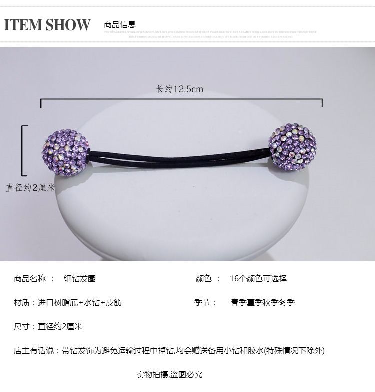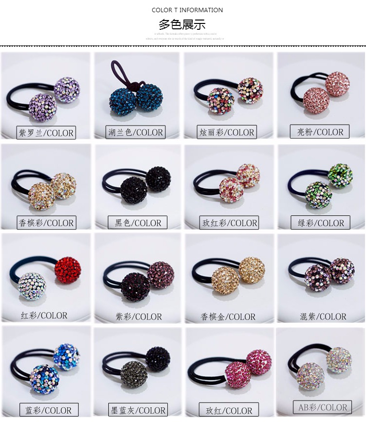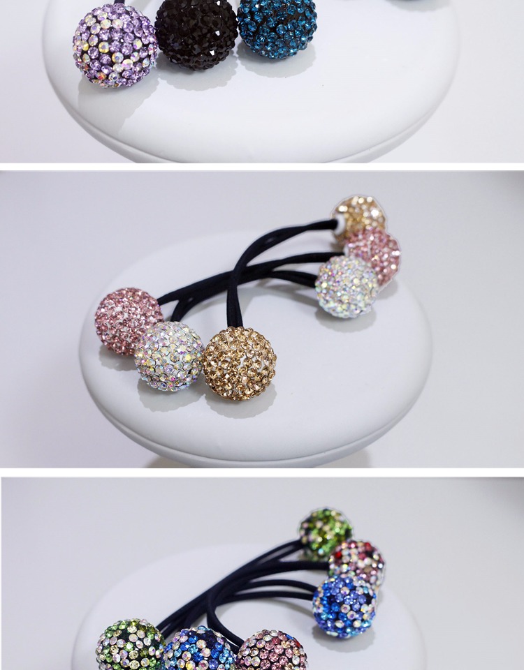 韓國彩色雙球球捷克水鉆滿鉆發圈發繩 正品像皮筋頭繩亞克力發飾1入