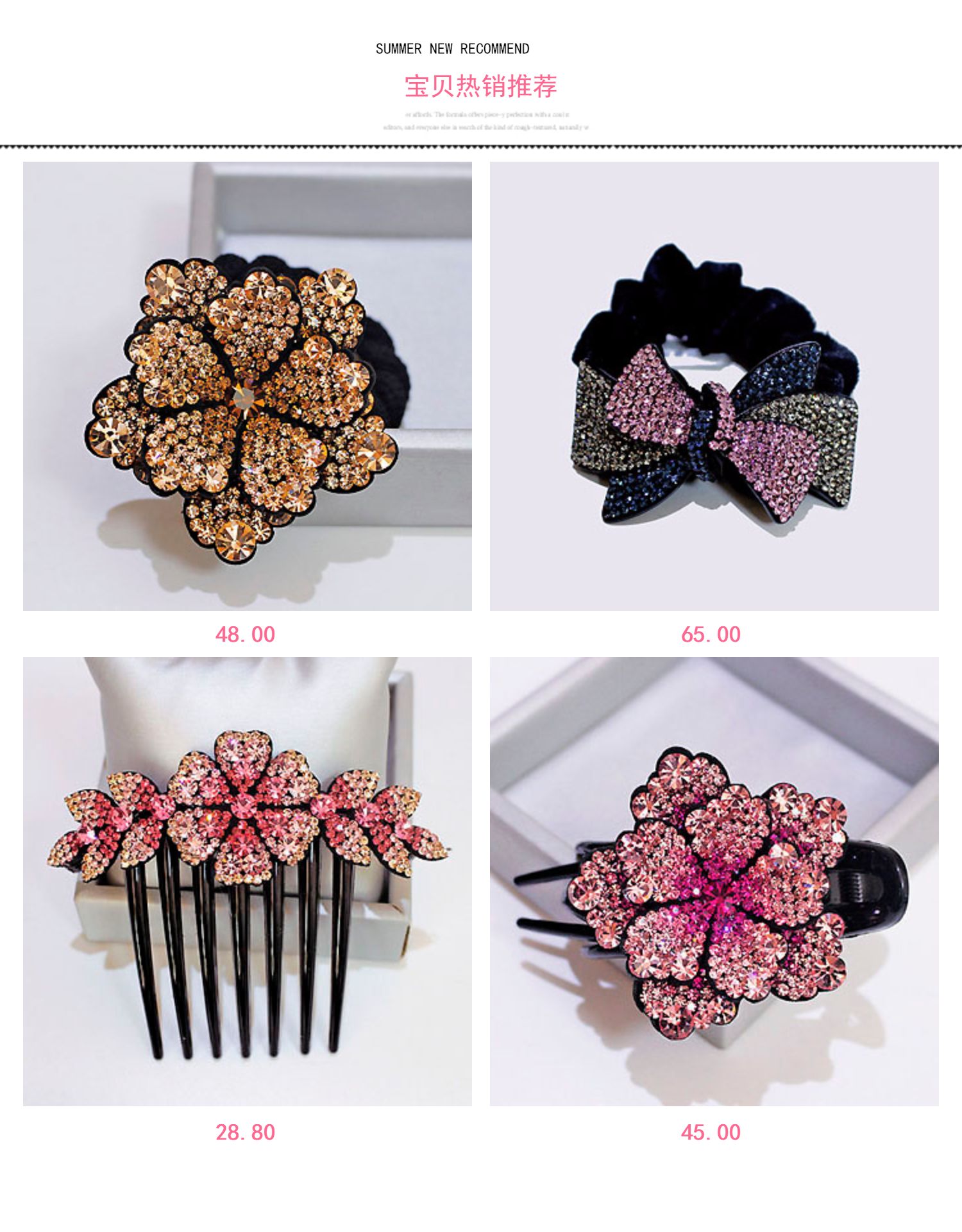 頭飾發繩韓國簡約水鉆發繩蝴蝶立體盤發發圈成人頭繩女發飾飾品1入