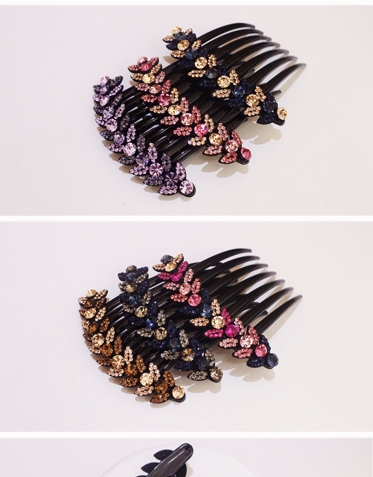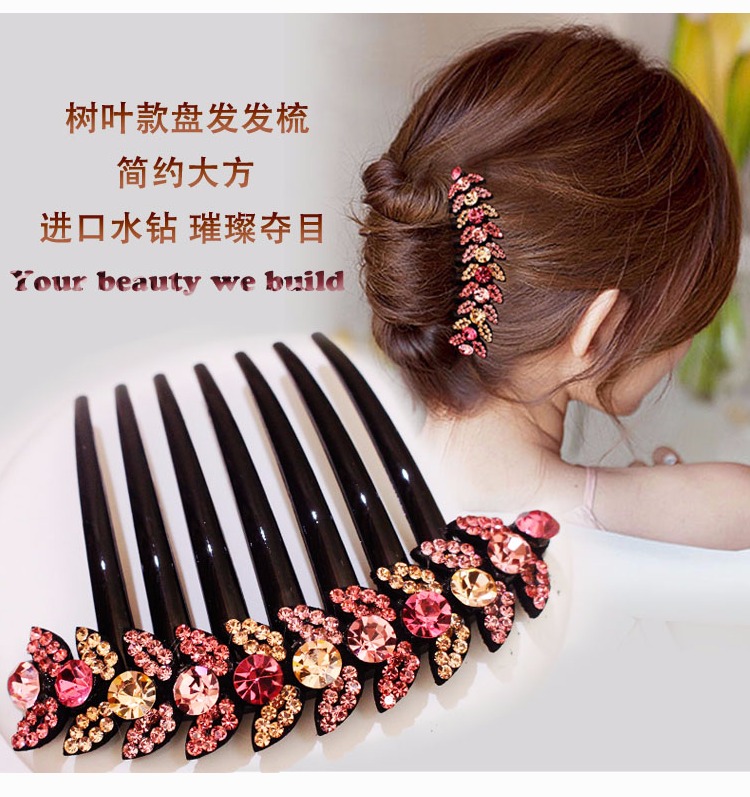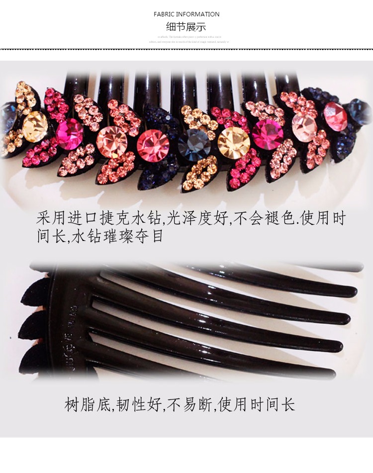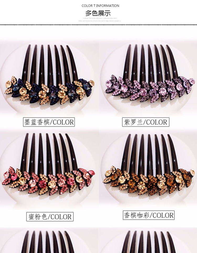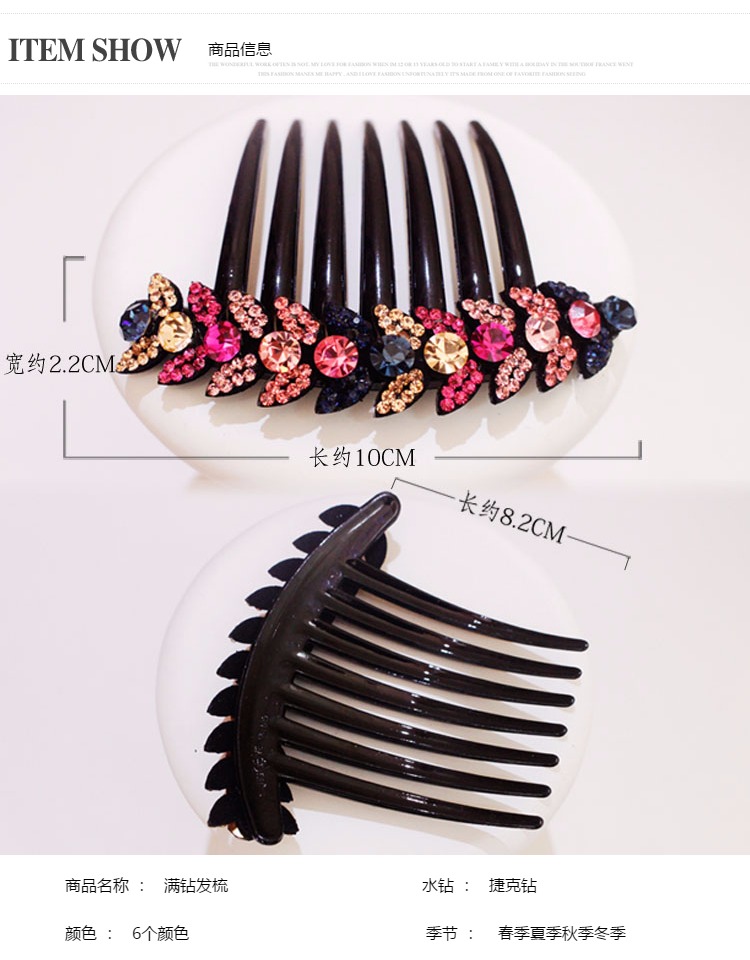 韓國盤發發梳發飾飾品 日韓水鉆七齒梳發夾簡約插梳頭飾滿鉆卡子1入