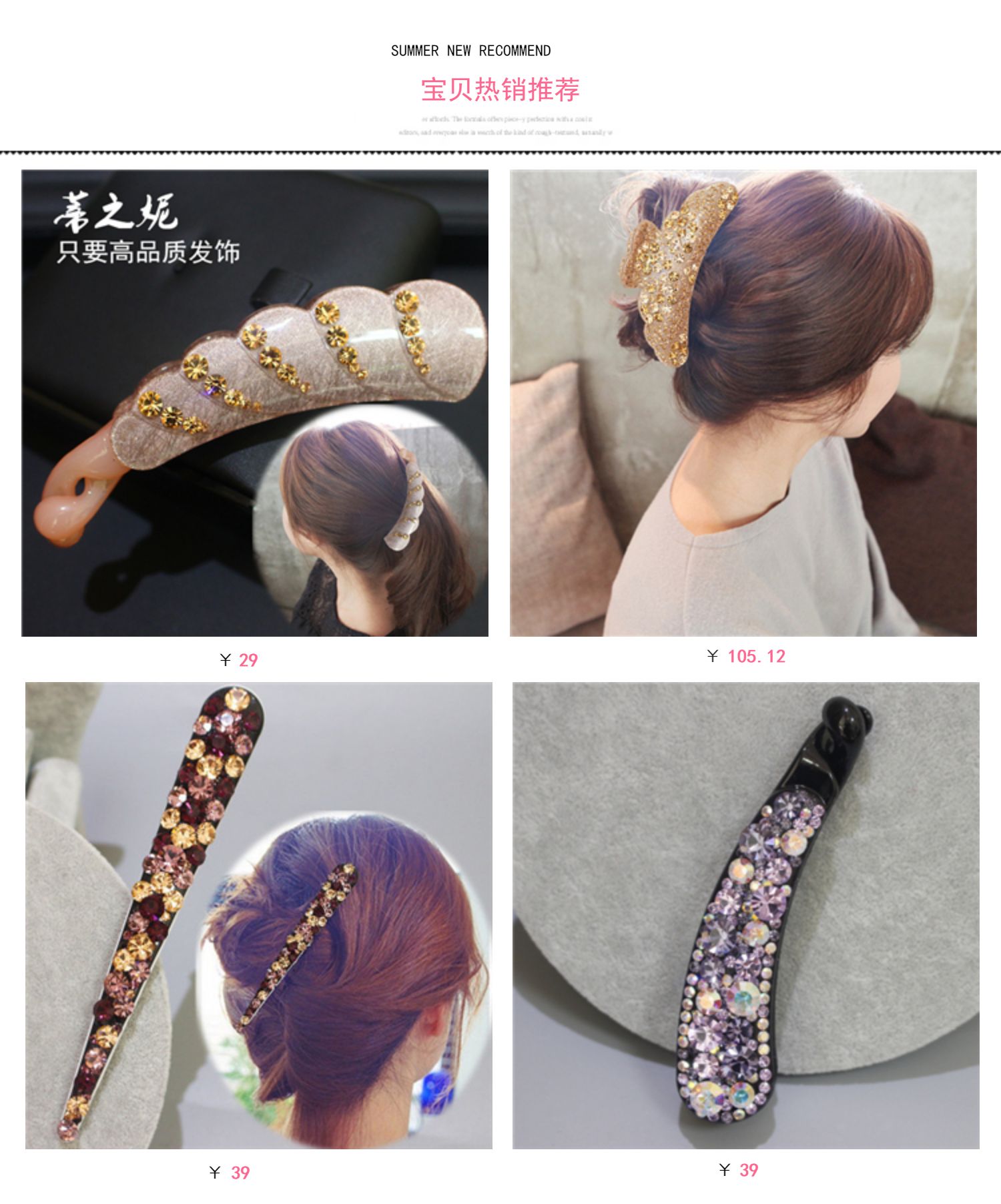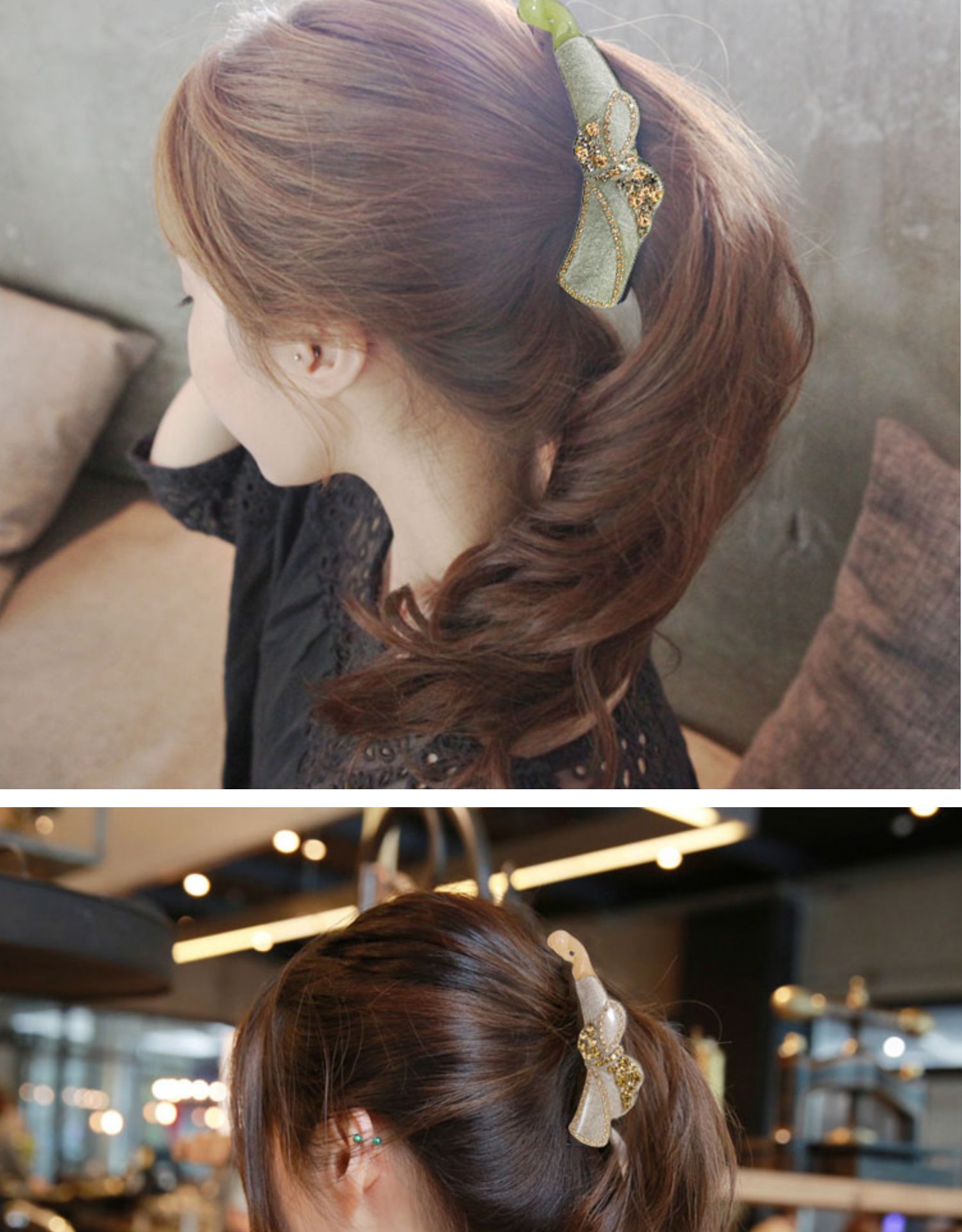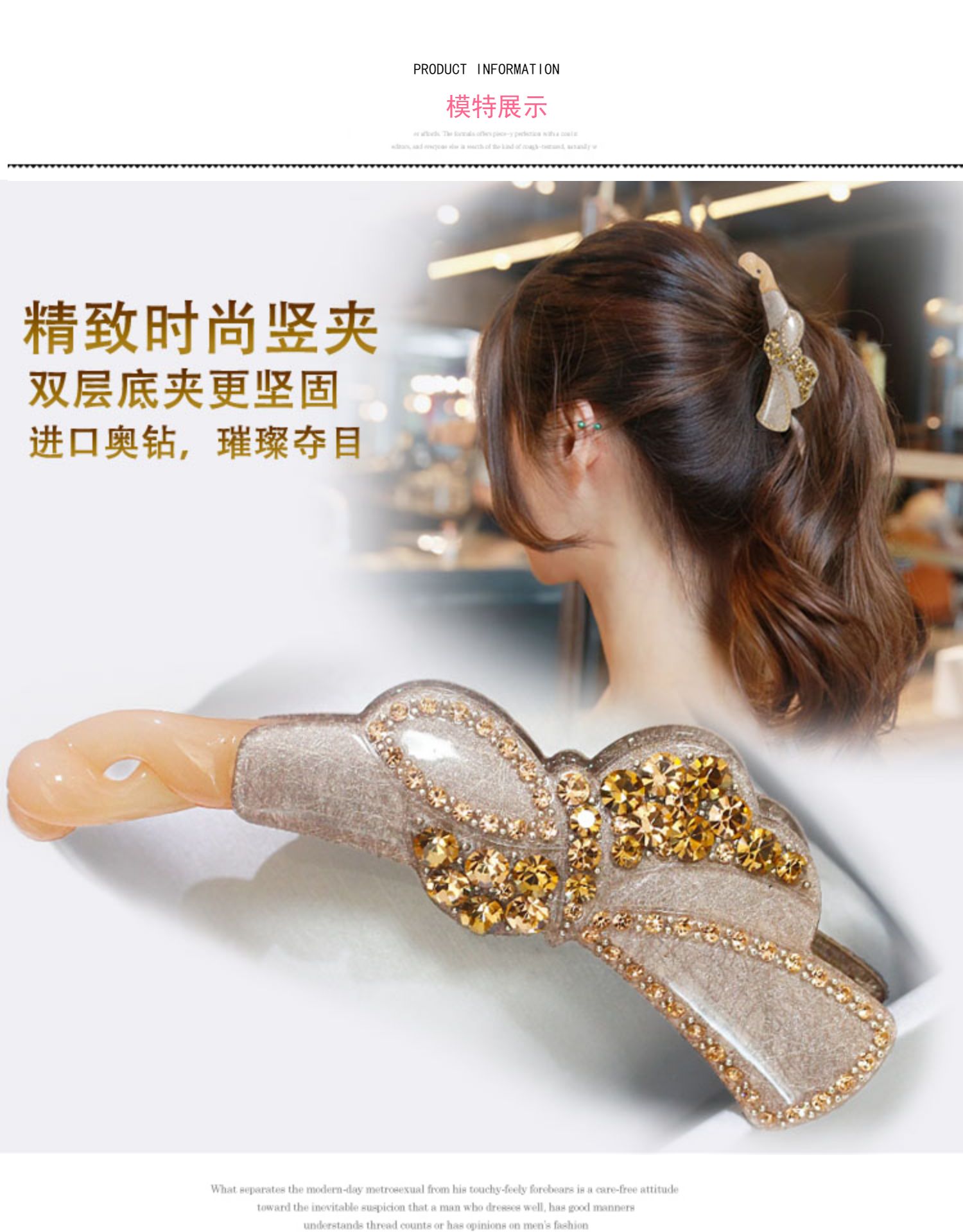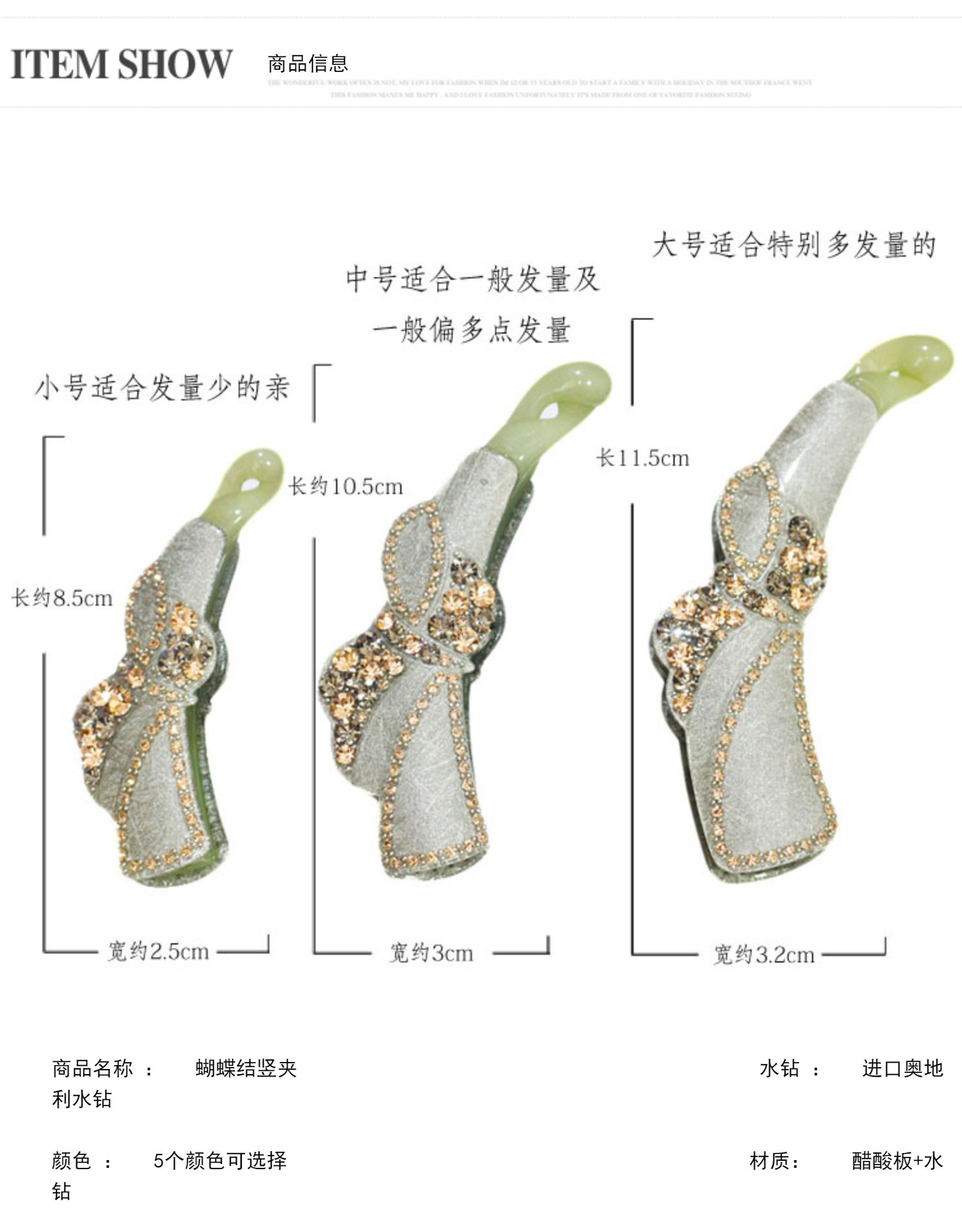 韓版水鉆發飾品 韓國蝴蝶結小號豎夾大號香蕉夾馬尾扣夾發夾頭飾1入