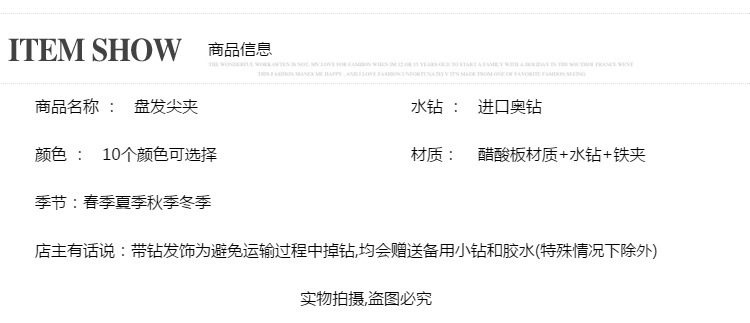 韓版大號鴨嘴夾盤發發夾韓國水鉆尖嘴夾一字夾馬尾夾發飾頭飾飾品1入