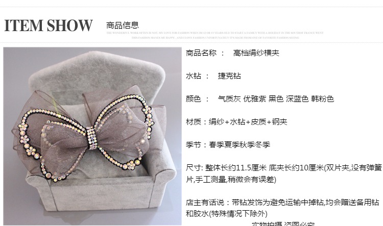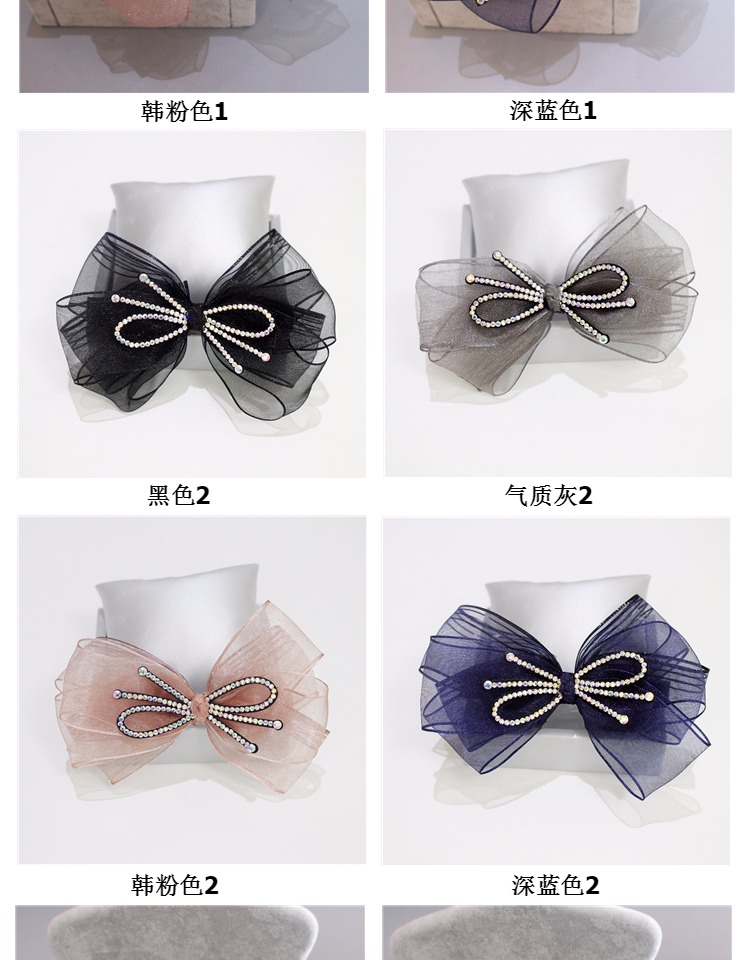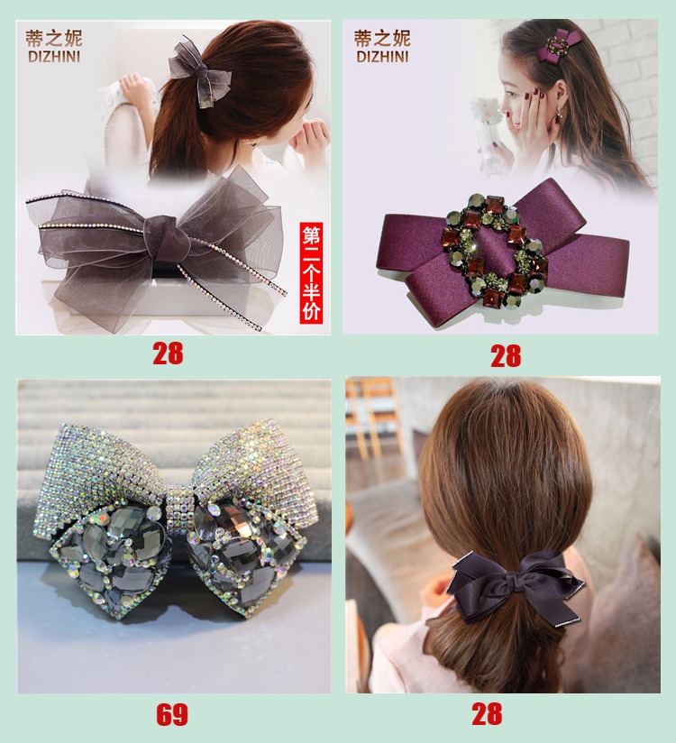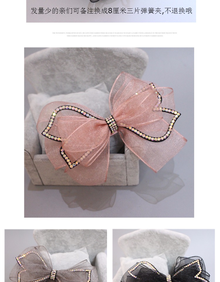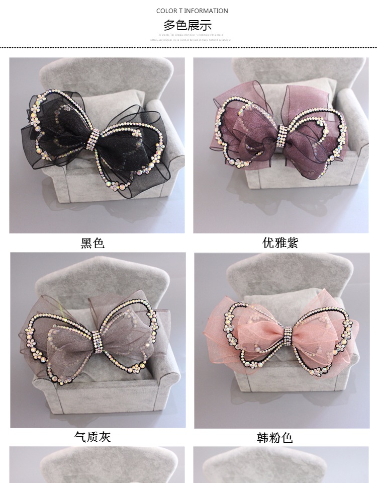 【天天特價】日韓發飾飾品絹紗水鉆蝴蝶結橫夾頂夾皮發夾彈簧夾1入