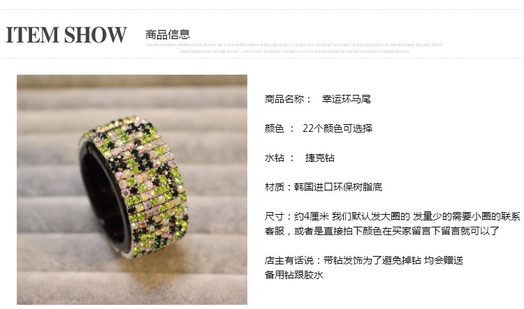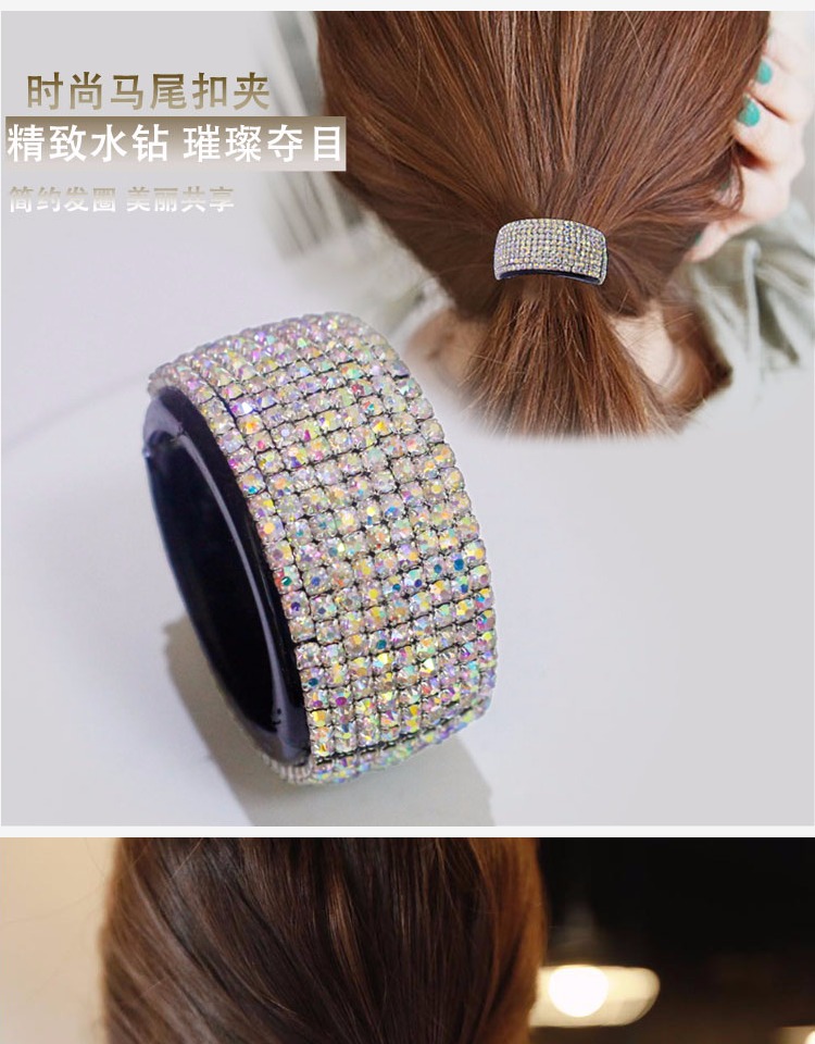 韓國發飾品韓版水晶滿鉆圓形發圈發繩香蕉夾豎夾幸運環馬尾扣發夾1入