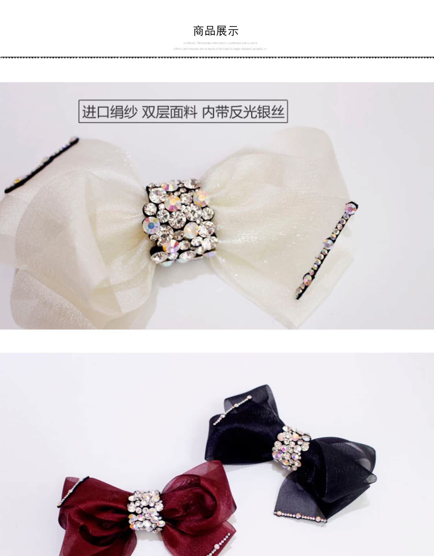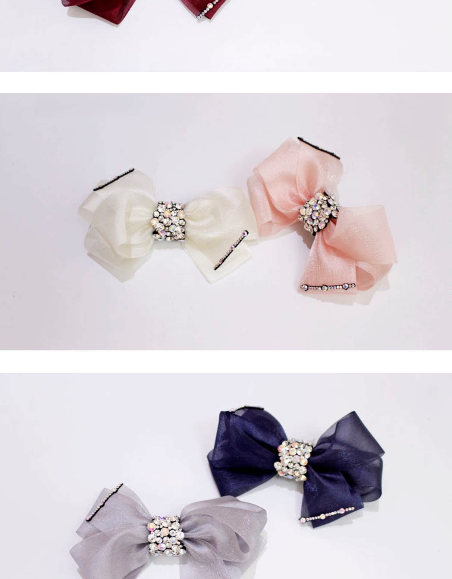 韓國水鉆蝴蝶結大號橫夾頂夾絹紗成人女發夾簡約彈簧夾馬尾扣夾子1入