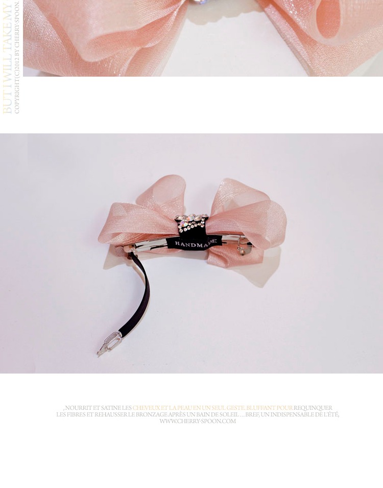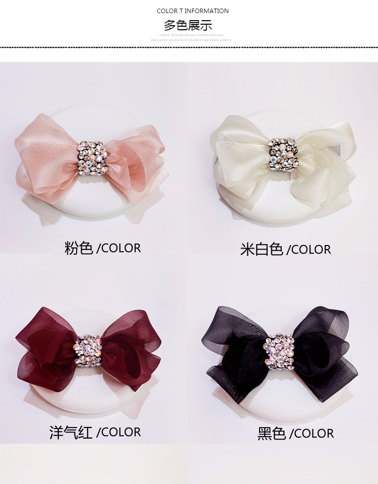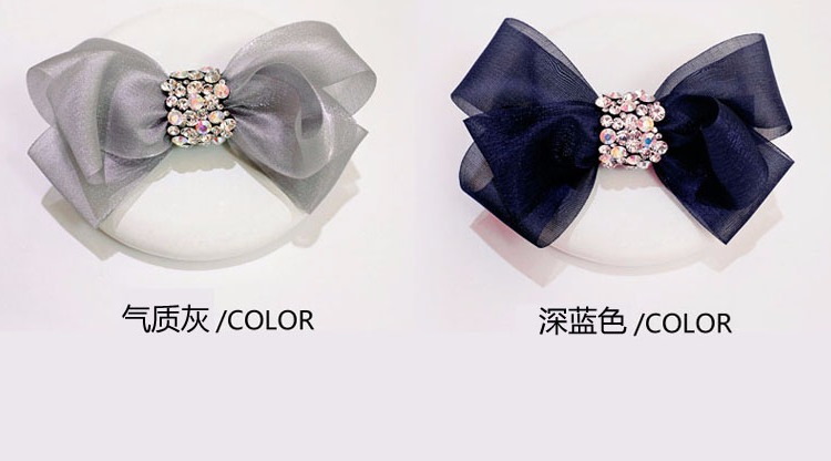 韓國絹紗蝴蝶結橫夾頂夾水鉆洋氣大號彈簧夾發夾馬尾扣夾頭飾發飾1入