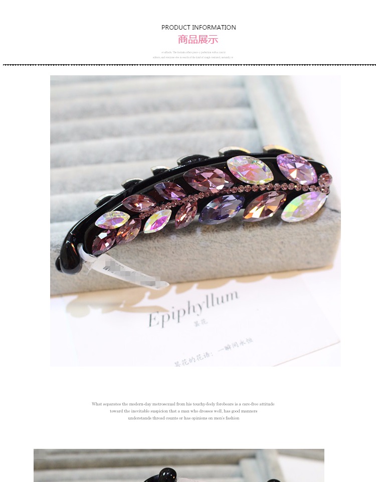 韓國新款冬季頭飾品 奧地利水晶樹葉豎夾大號香蕉夾馬尾扣夾發飾1入