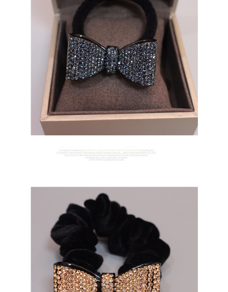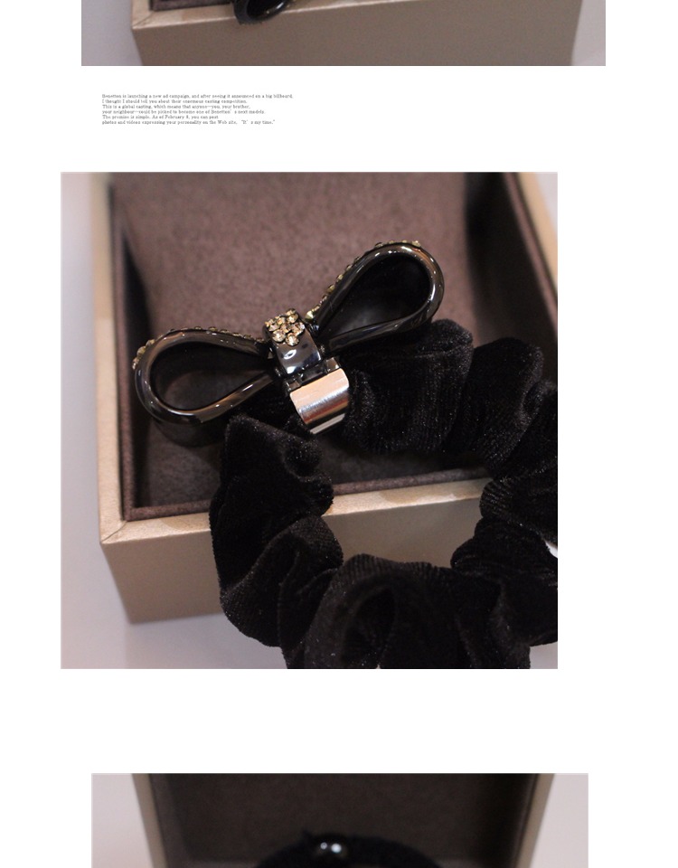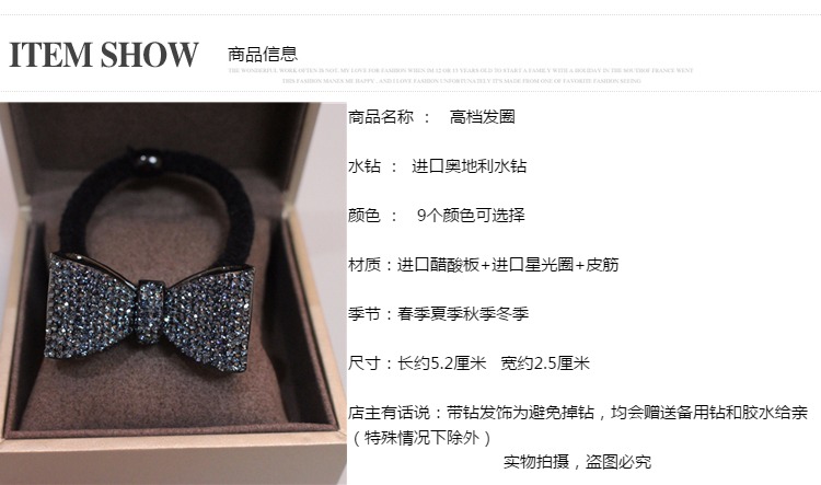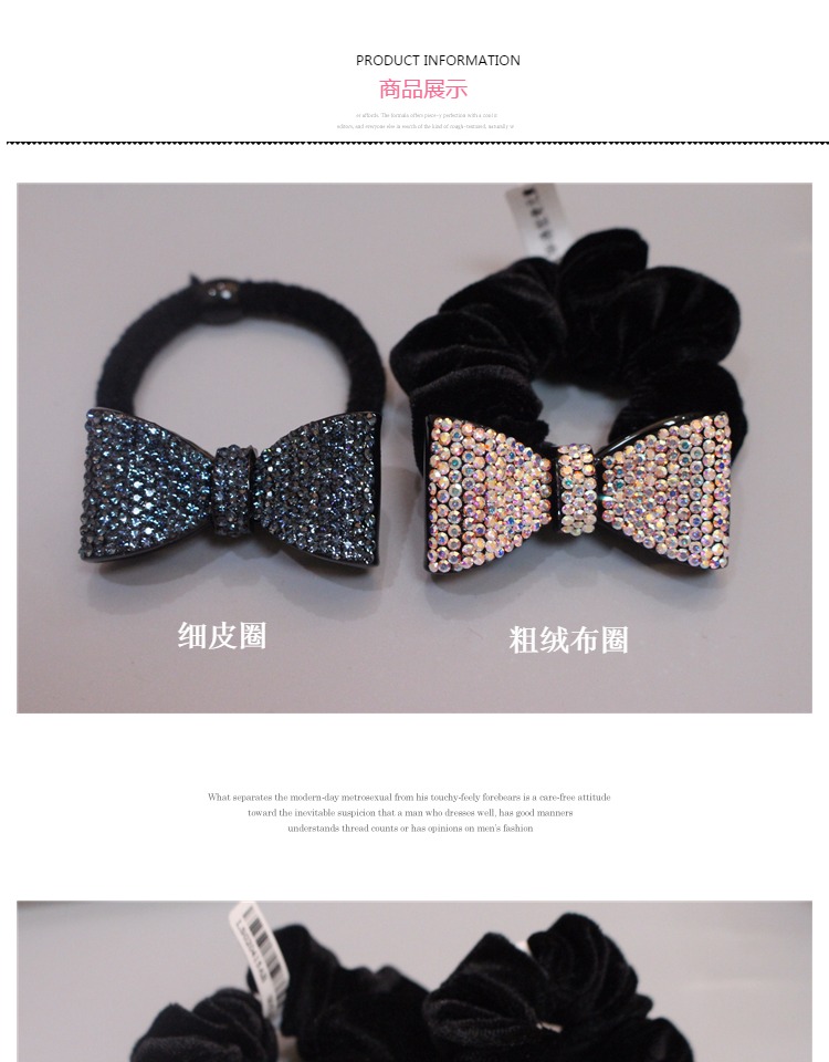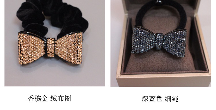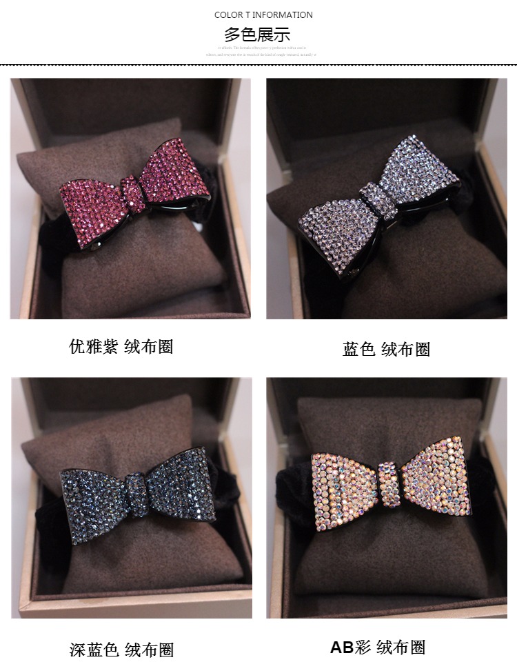 韓國絨布發圈進口水鉆蝴蝶結頭繩扎頭皮筋 韓版盤發繩扎馬尾發飾1入
