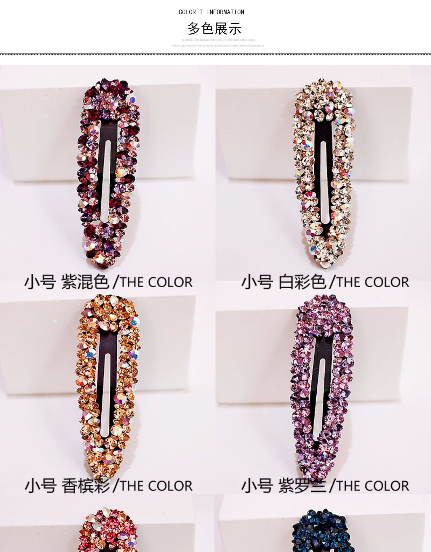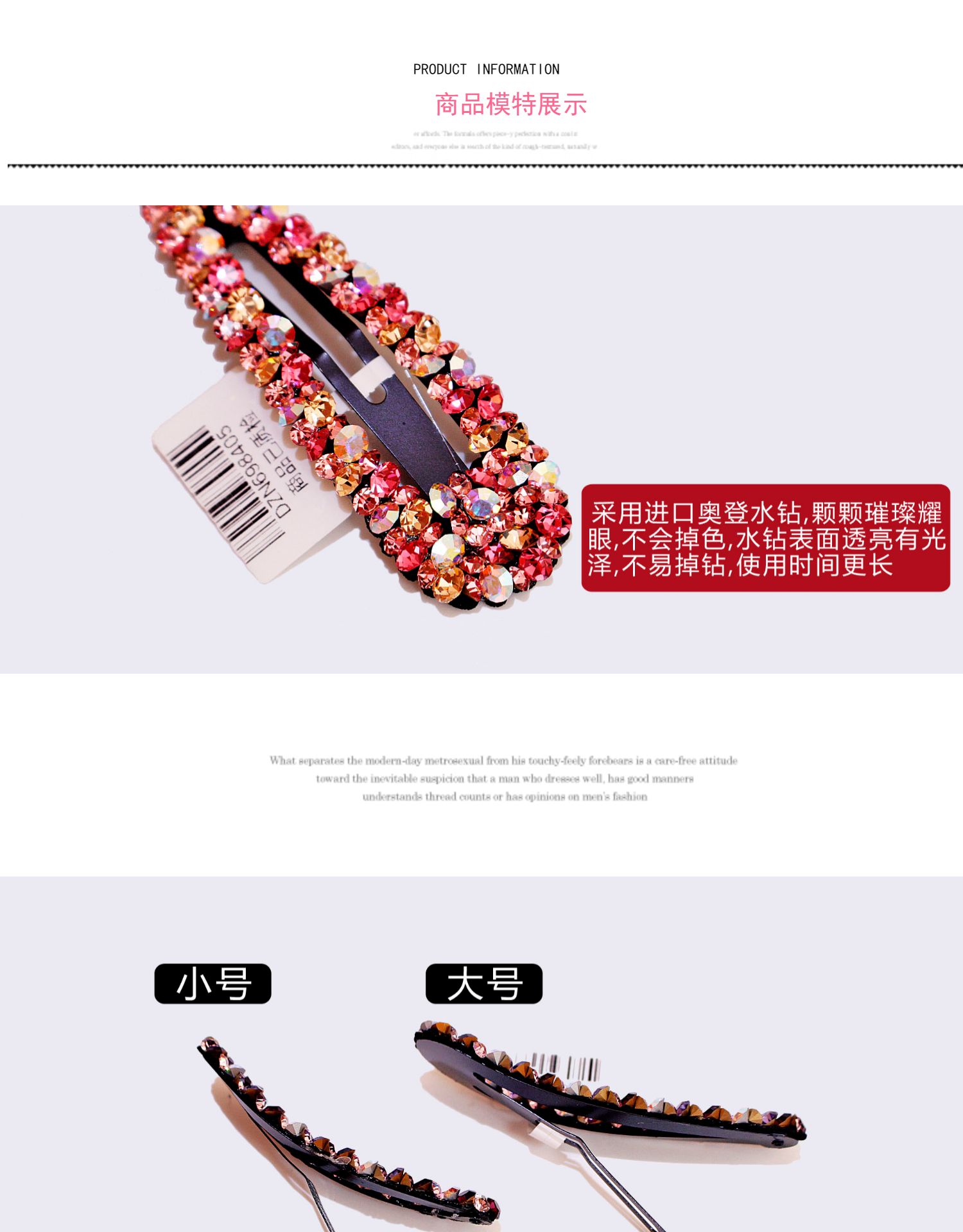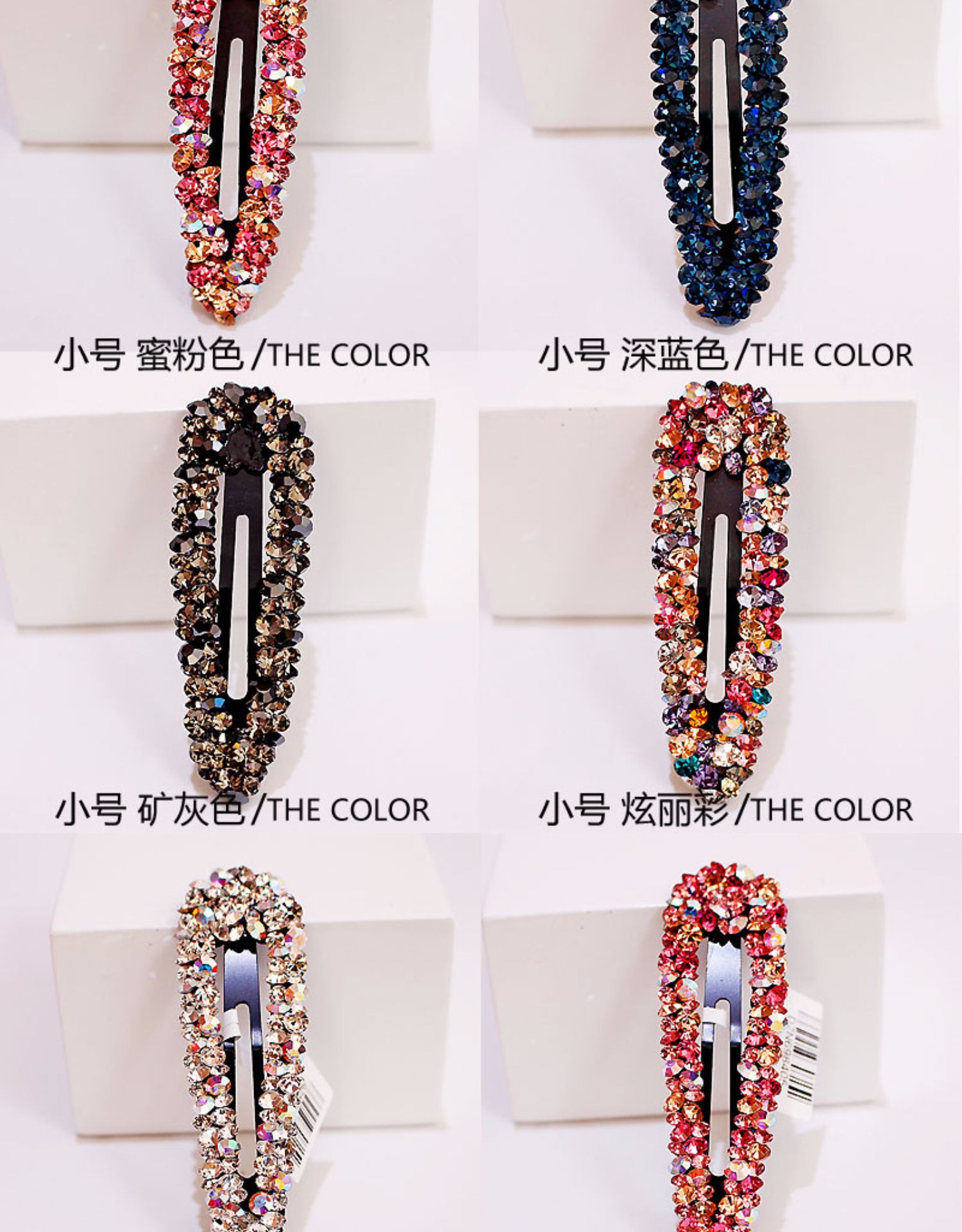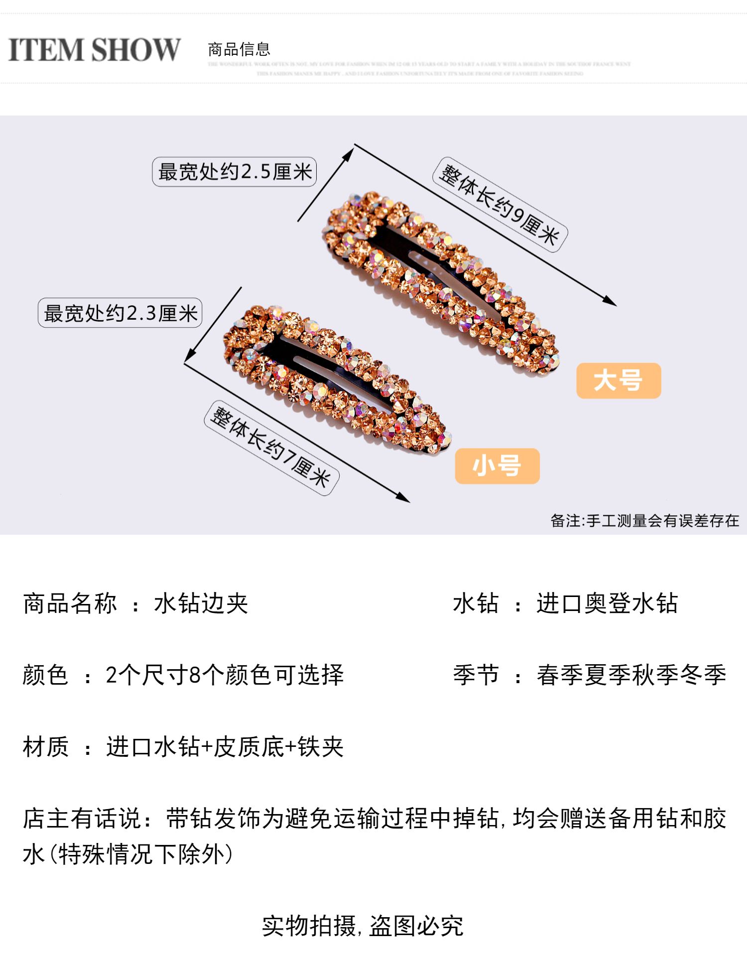 韓版進口奧登水鉆彩鉆鏤空BB夾子發夾邊夾頂夾留海夾發飾韓國頭飾1入