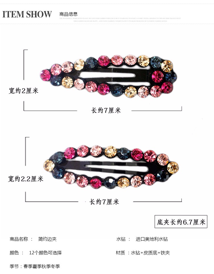 韓版BB夾發飾品韓國水鉆劉海夾一字夾邊夾簡約發夾女頭飾發卡1入