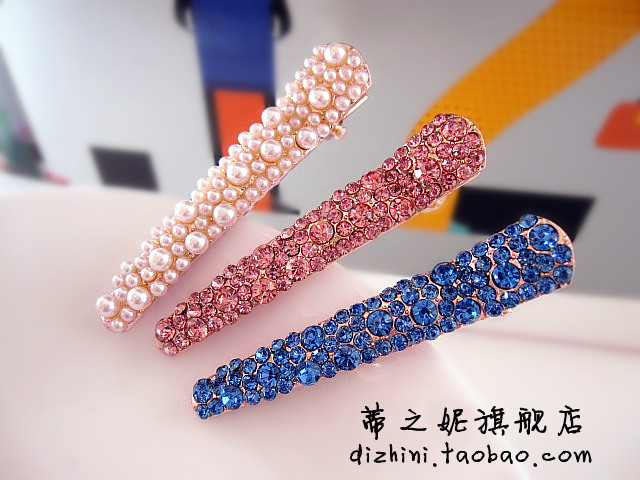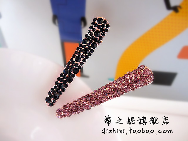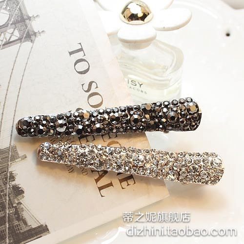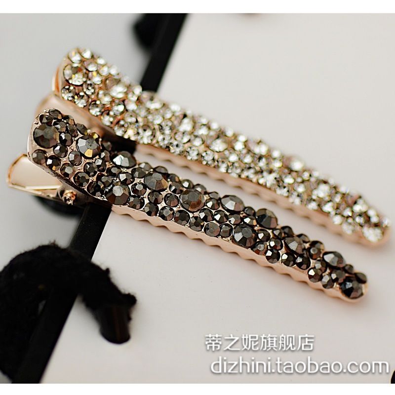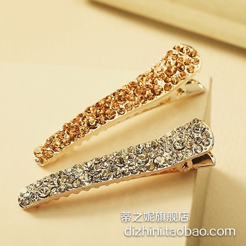 韓國邊夾水鉆一字夾對夾頂夾鴨嘴夾劉海夾發卡發夾滿鉆發飾頭飾品1入
