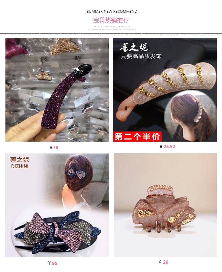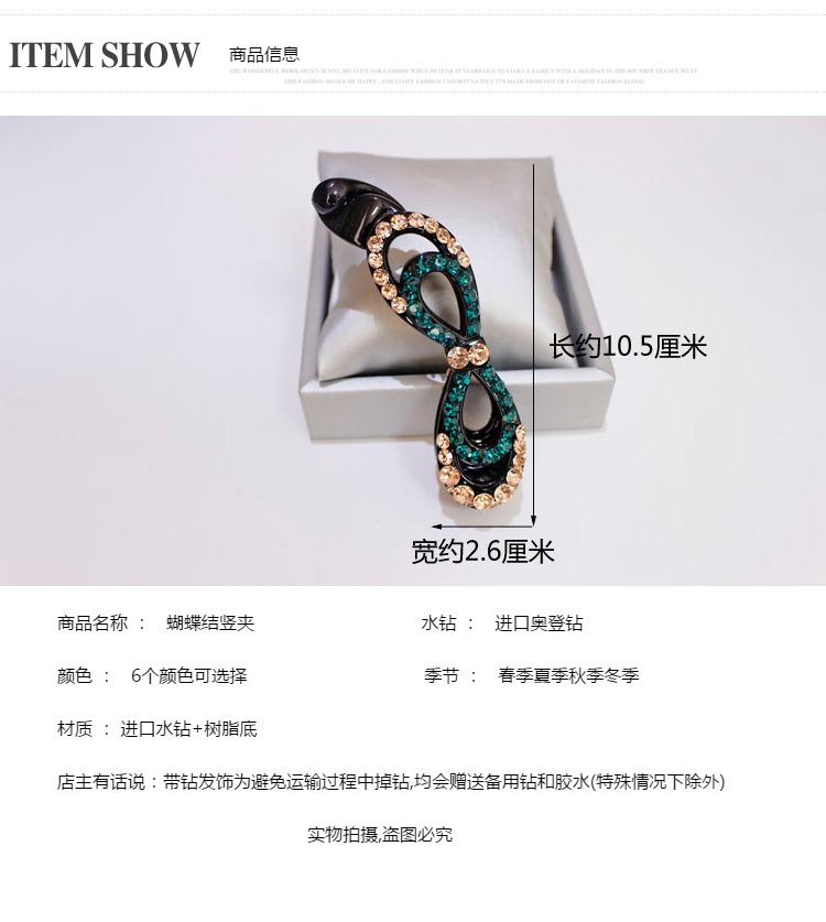 韓國奧登水鉆蝴蝶結香蕉夾發飾 中號簡約豎夾馬尾扣扭夾發夾飾品1入