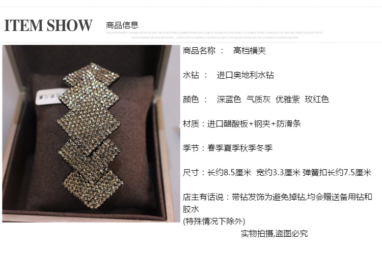 韓國新款高檔發飾品滿鉆水晶橫夾彈簧夾馬尾扣夾一字夾簡約盤發夾1入