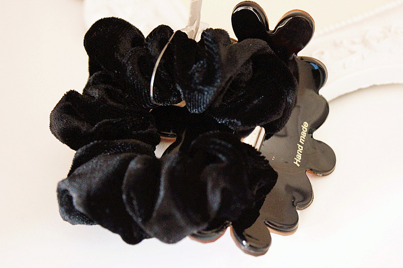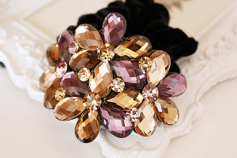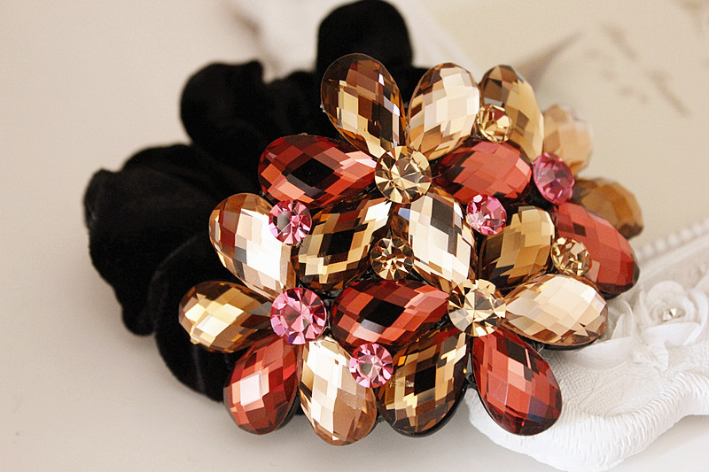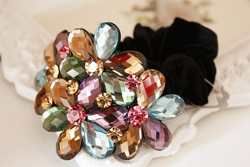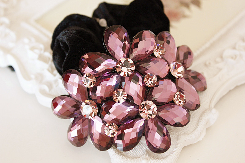 韓國進口發飾品水晶奧登花朵彩色發圈發繩黑色頭繩馬尾圈盤發頭飾1入