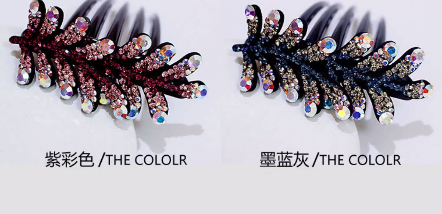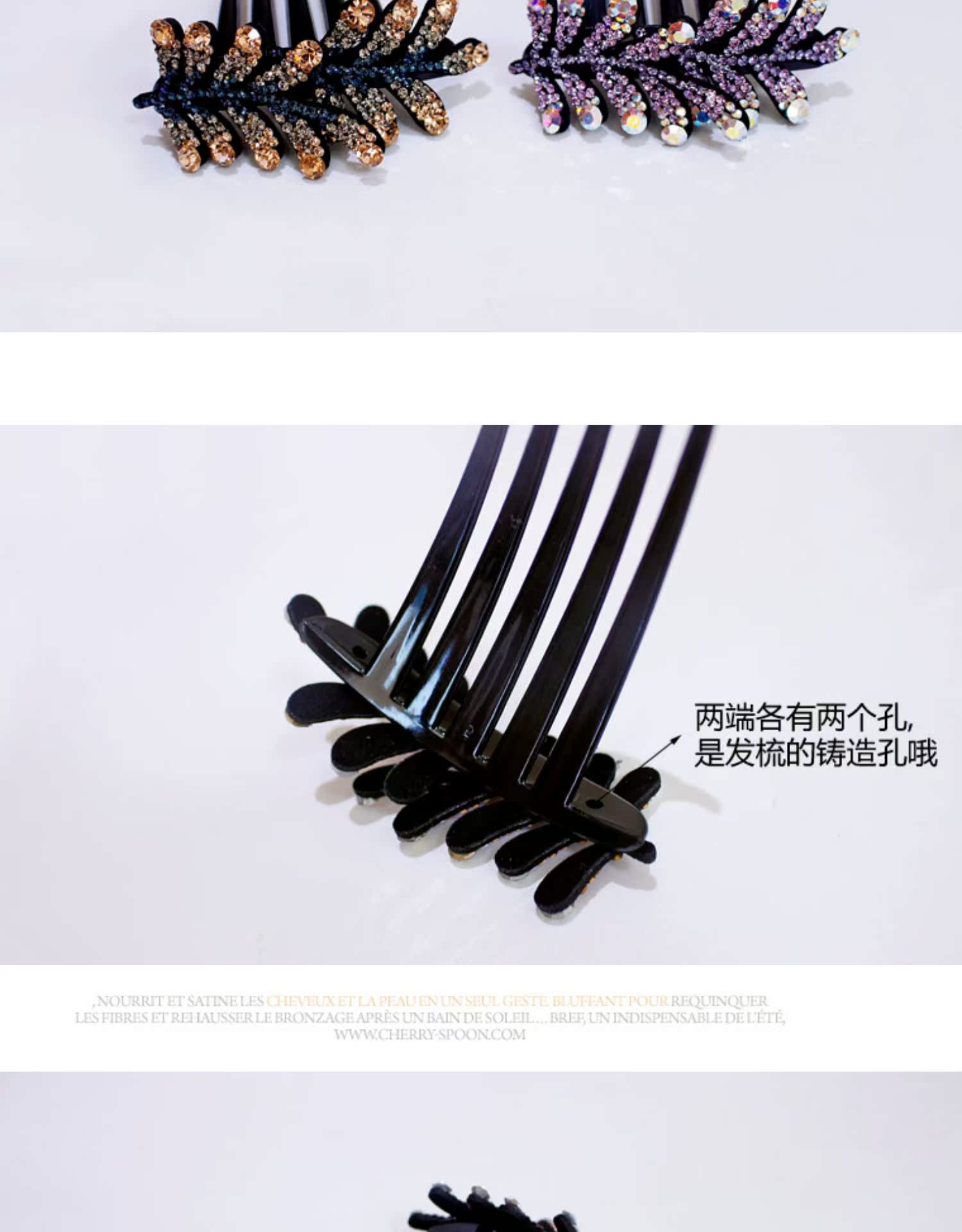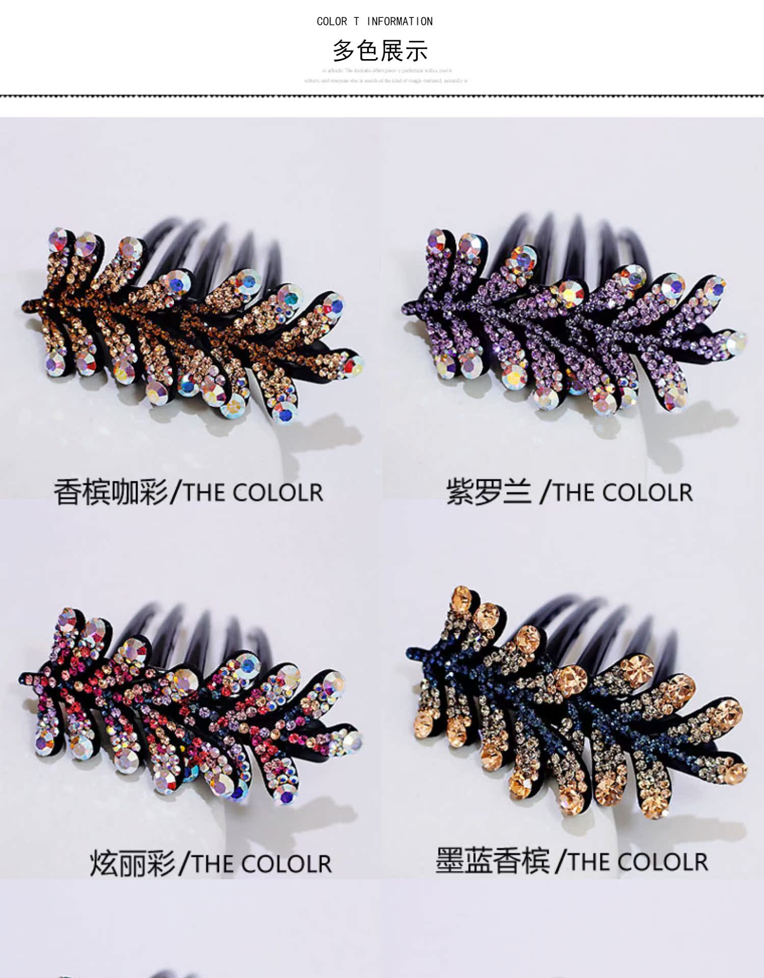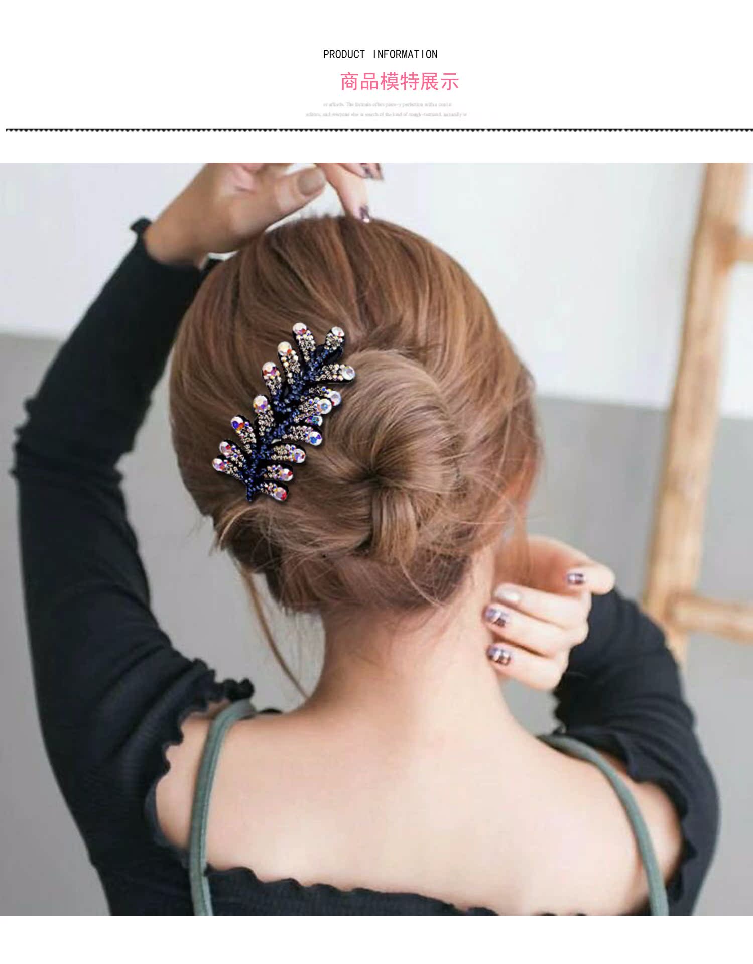 韓國水鉆盤發發梳樹葉五齒插梳奧登鉆發夾發量少盤頭發卡發飾飾品1入