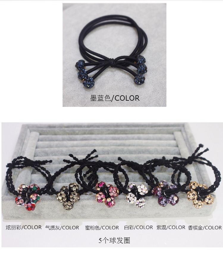 韓國頭飾發圈 馬尾扣水鉆球發繩簡約百搭多股打結頭繩高彈力皮筋1入