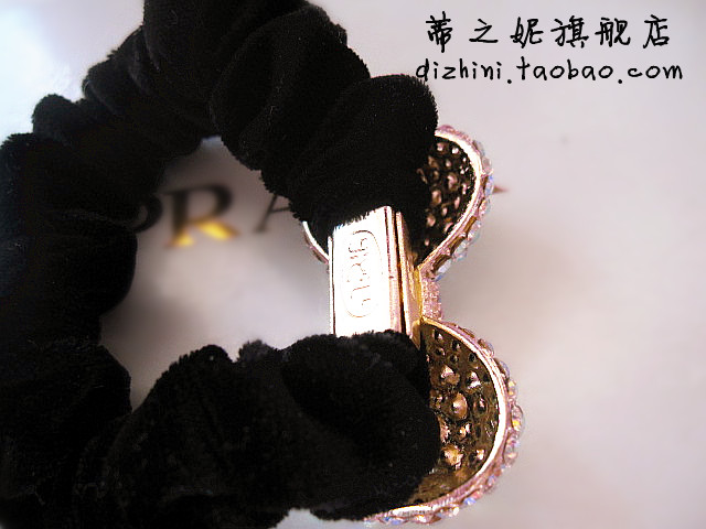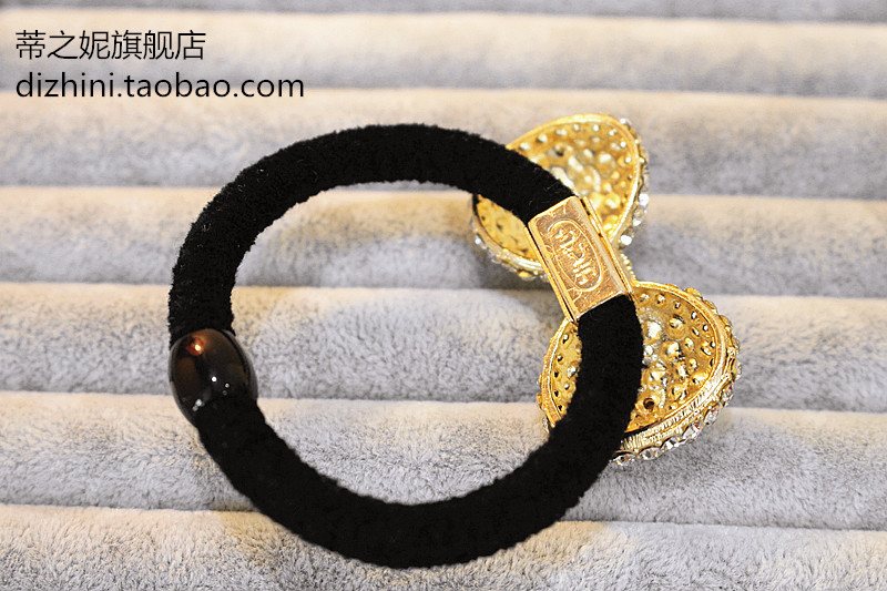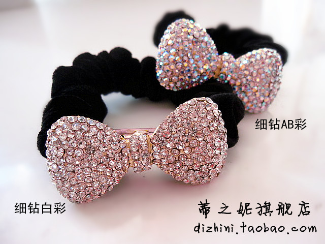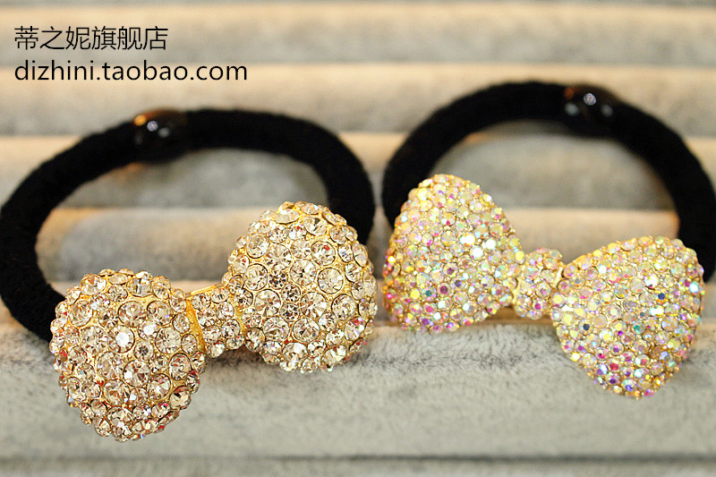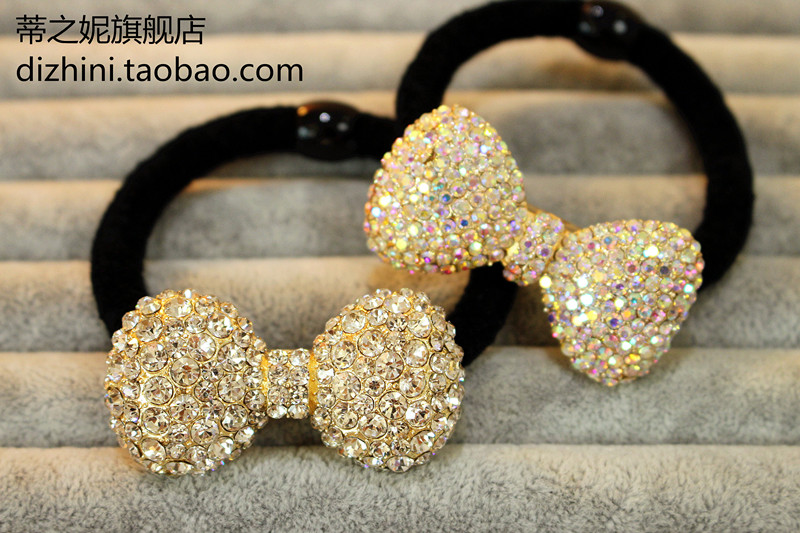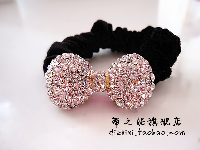 韓國正品頭飾品 韓版滿鉆水晶合金蝴蝶結發圈盤發繩黑色細馬尾圈1入