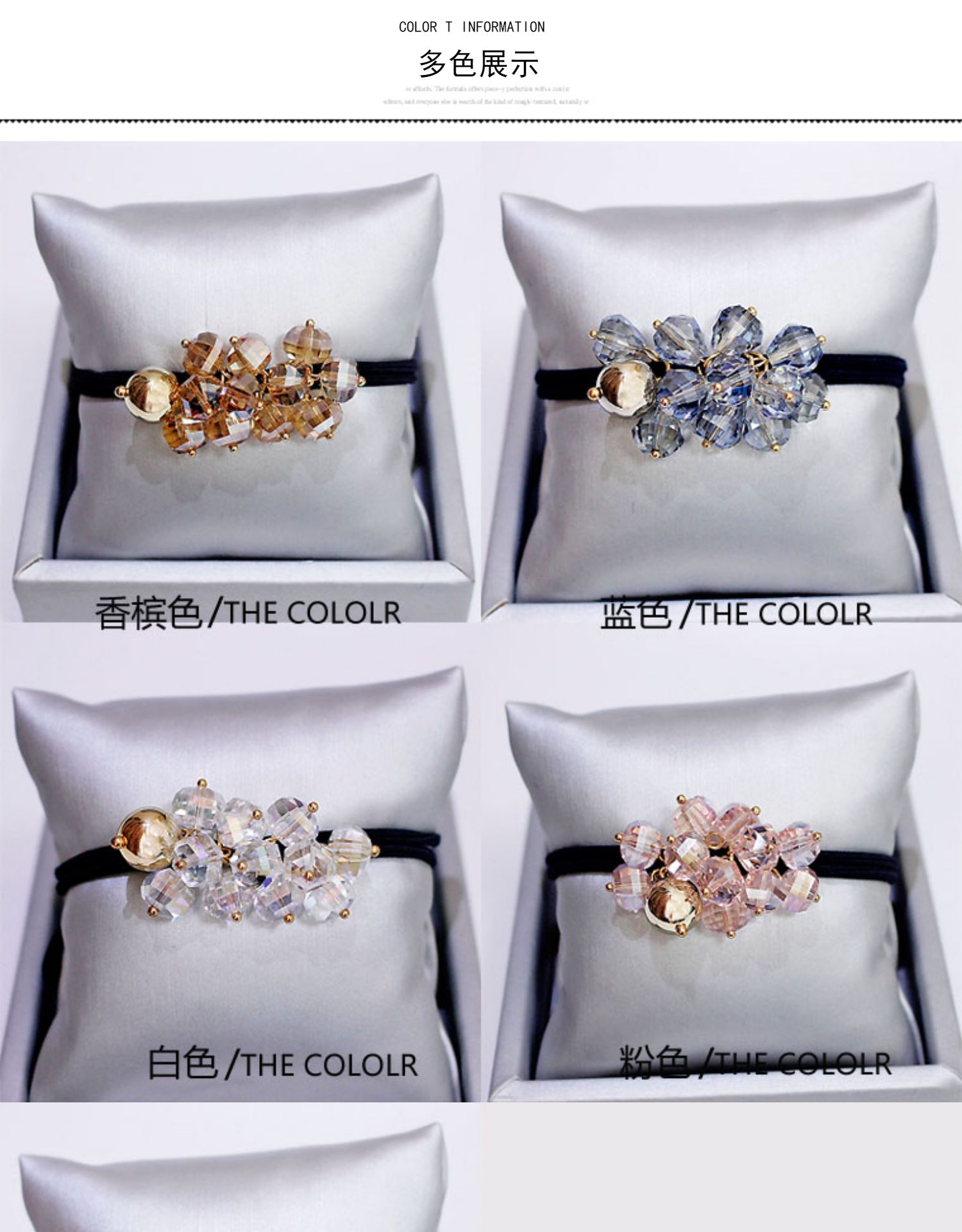 韓版發圈橡皮筋發圈女韓國水晶串珠發繩簡約皮套發飾優雅頭飾飾品1入