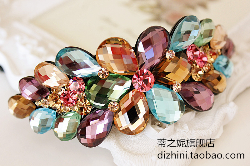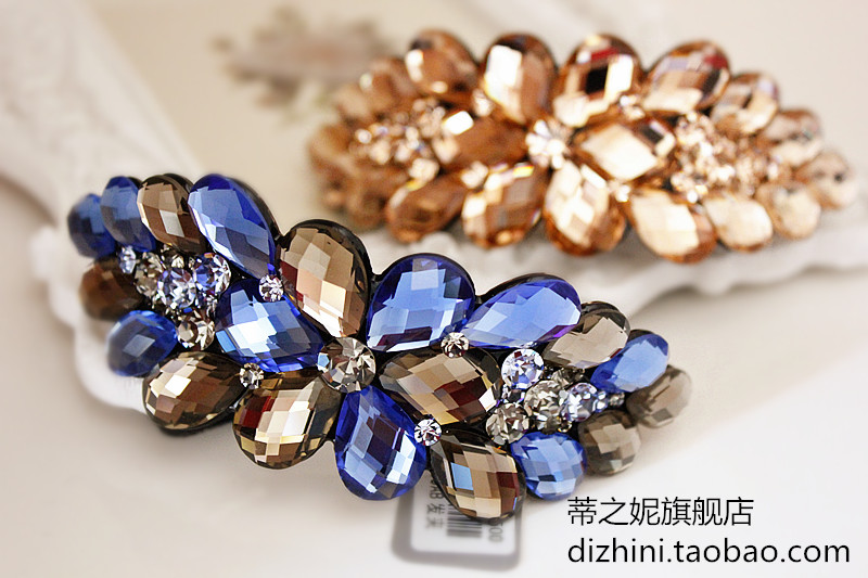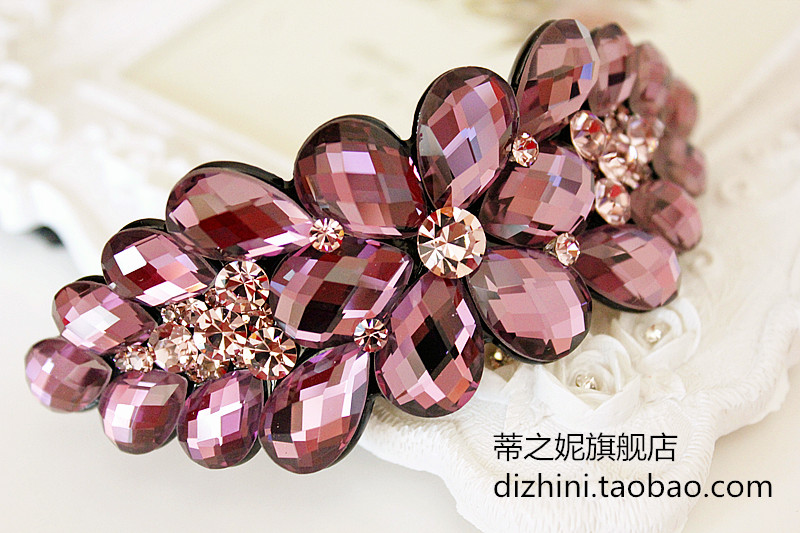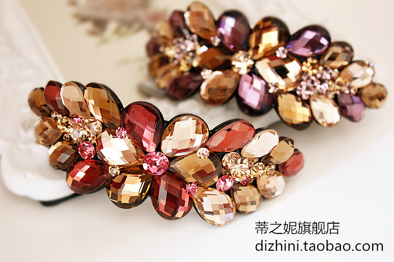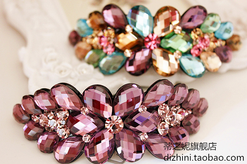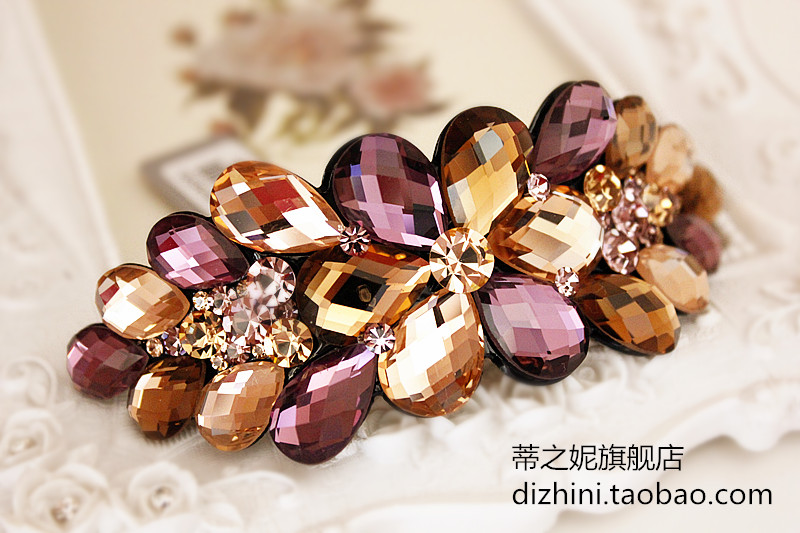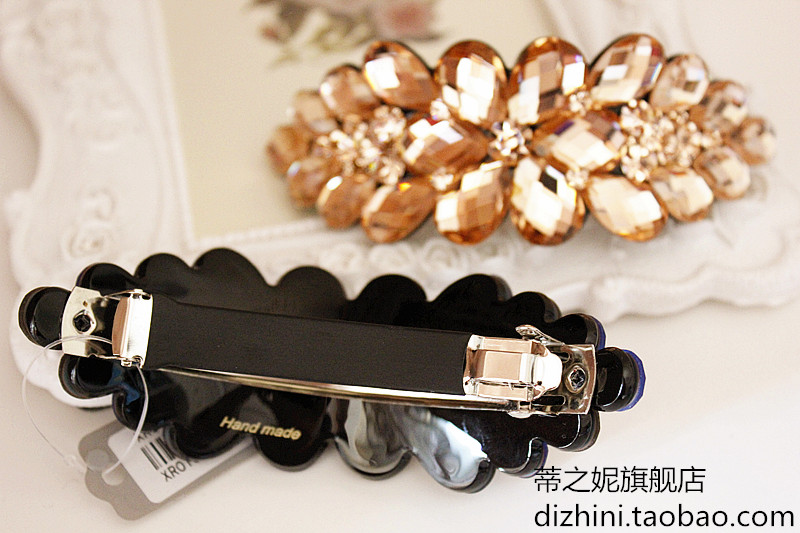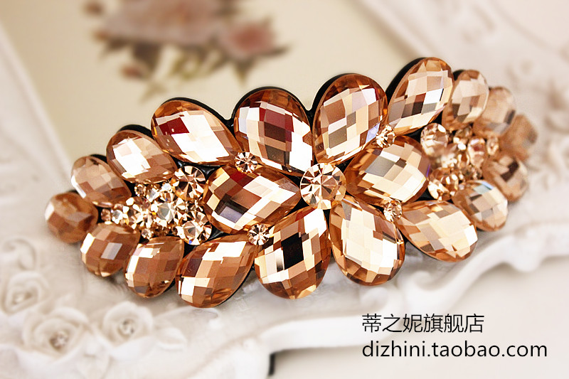 韓式水晶發飾品 滿鉆花朵橫夾盤發卡馬尾夾大號頂夾彈簧扣淑女款1入
