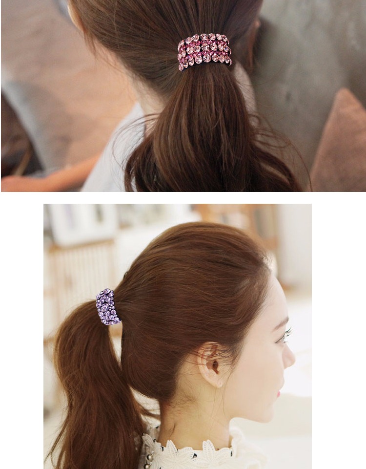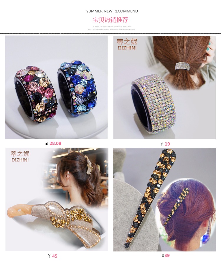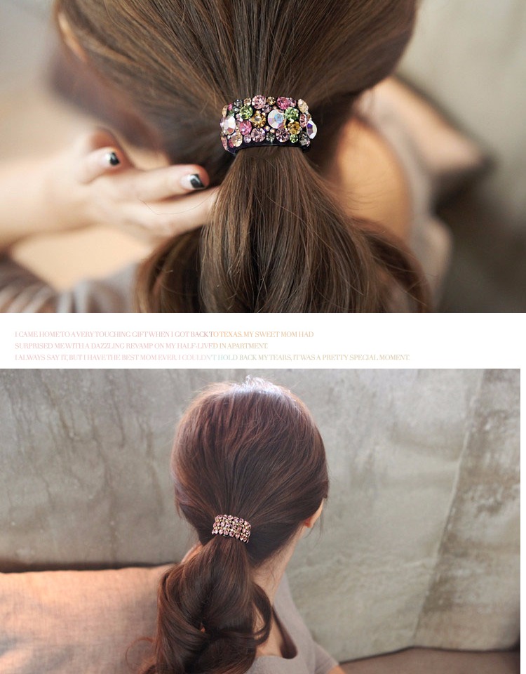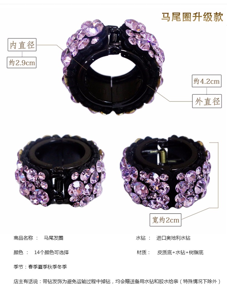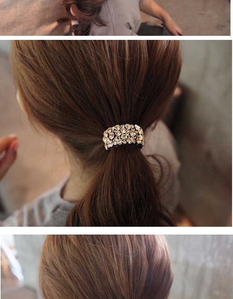 韓國水鉆發飾品 韓版水晶頭繩豎夾香蕉夾馬尾扣圓形發圈頭飾1入