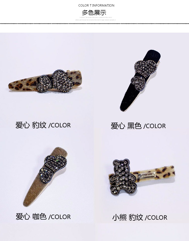 韓國水鉆邊夾小號鴨嘴夾豹紋劉海夾發夾成人夾碎頭發夾子發飾頭飾1入