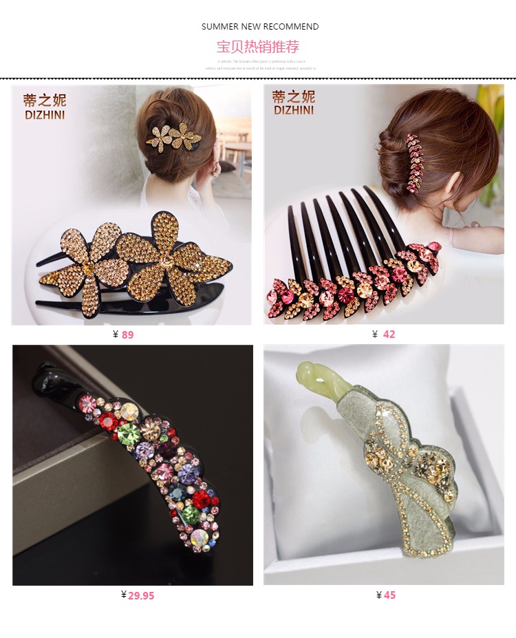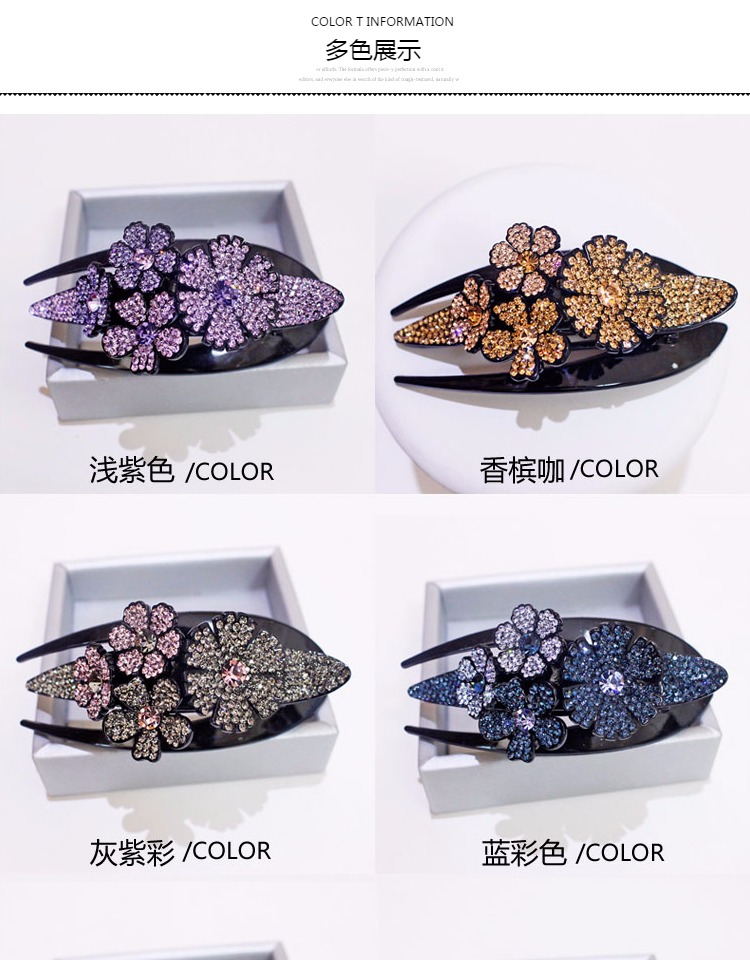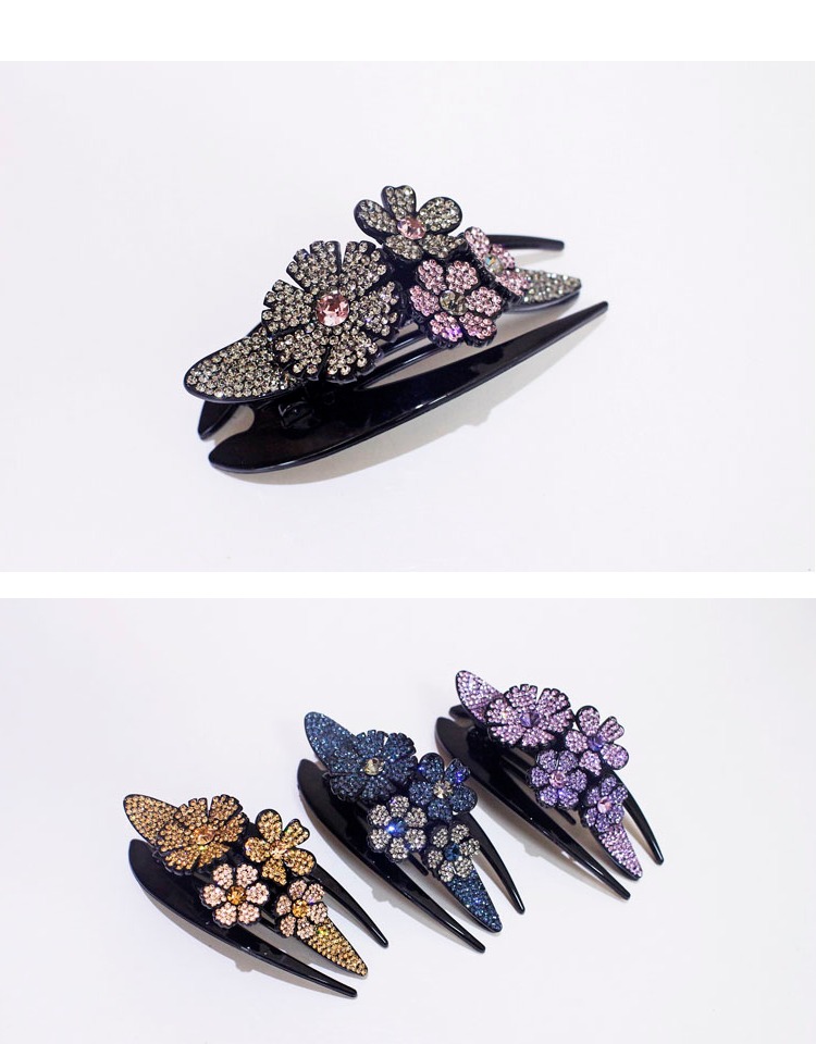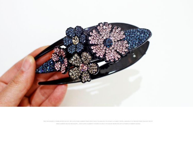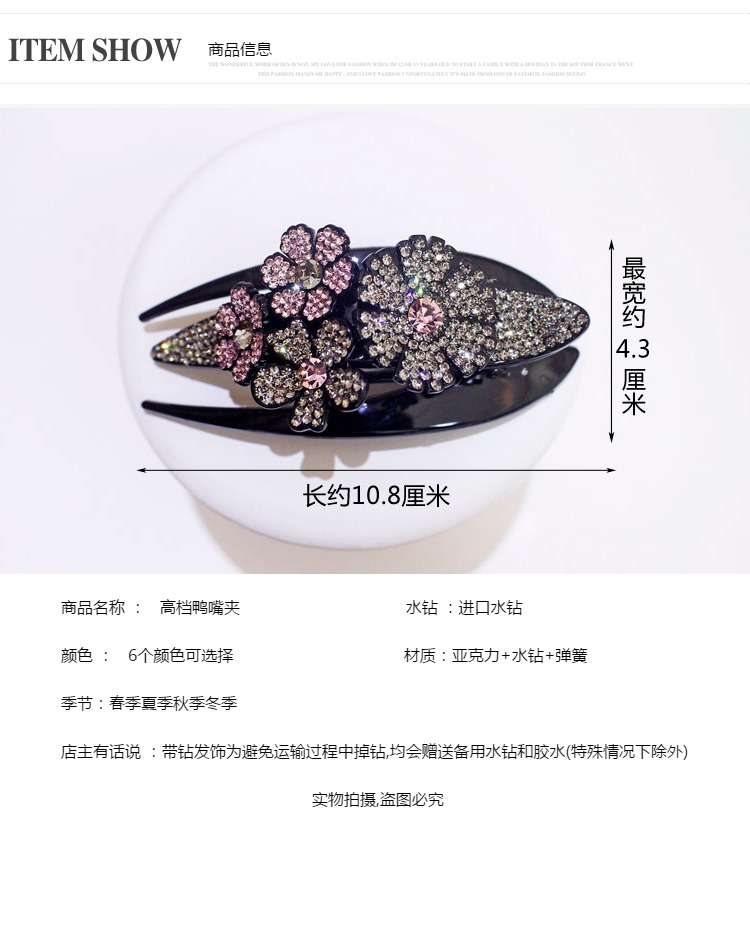 韓國頭飾鴨嘴夾發抓成人抓夾水鉆花朵盤發一字夾發卡大號發夾發飾1入