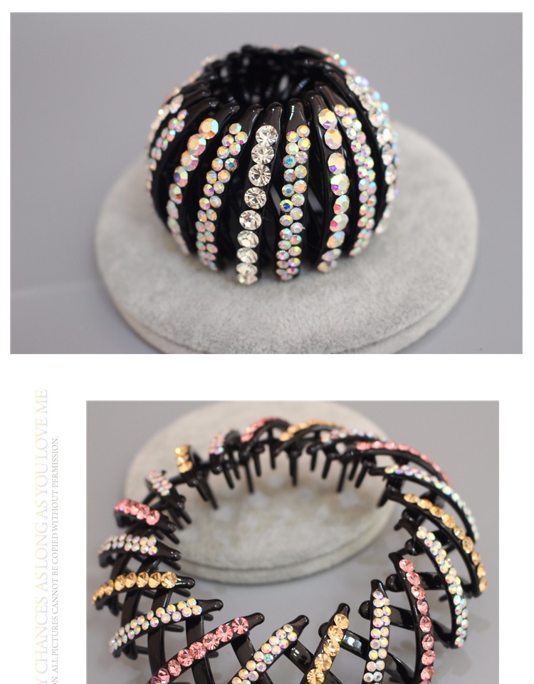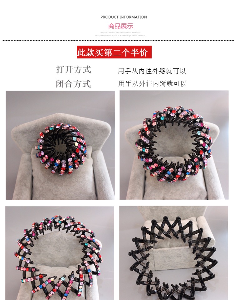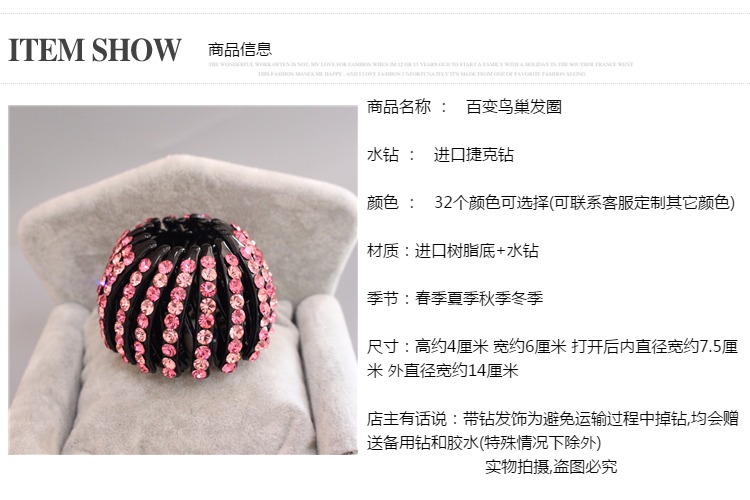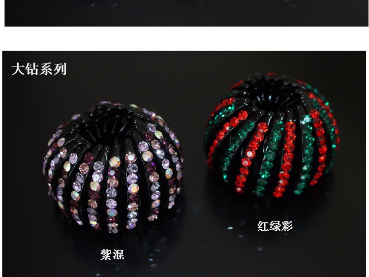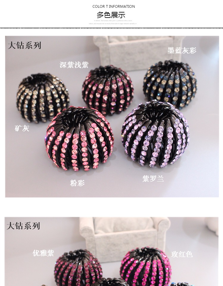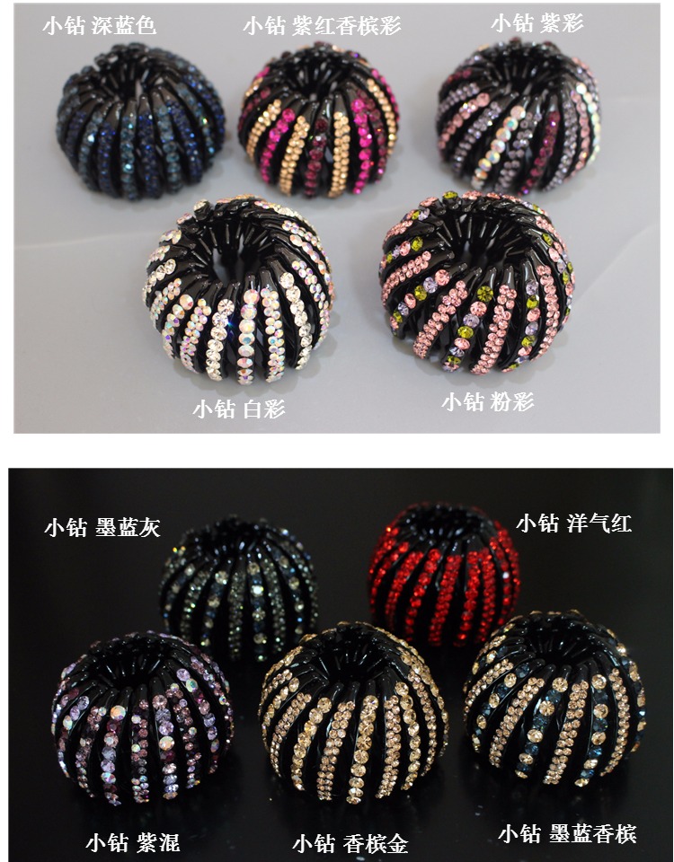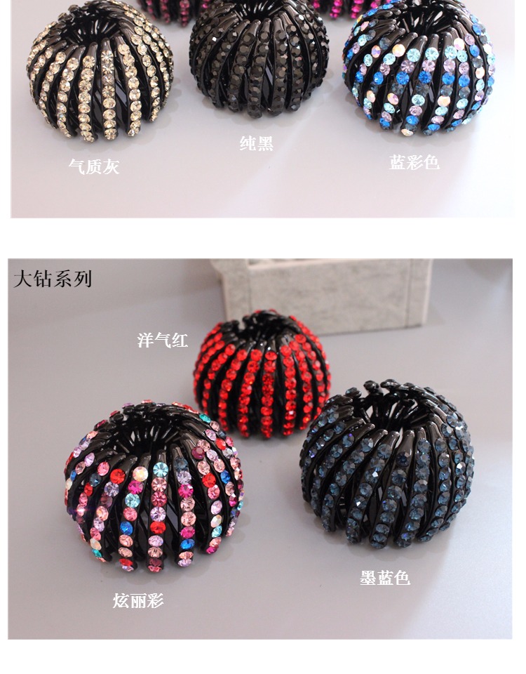 韓版頭發飾鑲鉆水晶水鉆鳥巢發夾發圈盤發馬尾扣夾抓夾花苞丸子頭1入