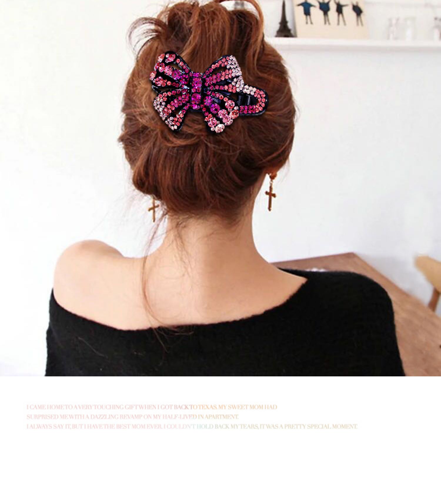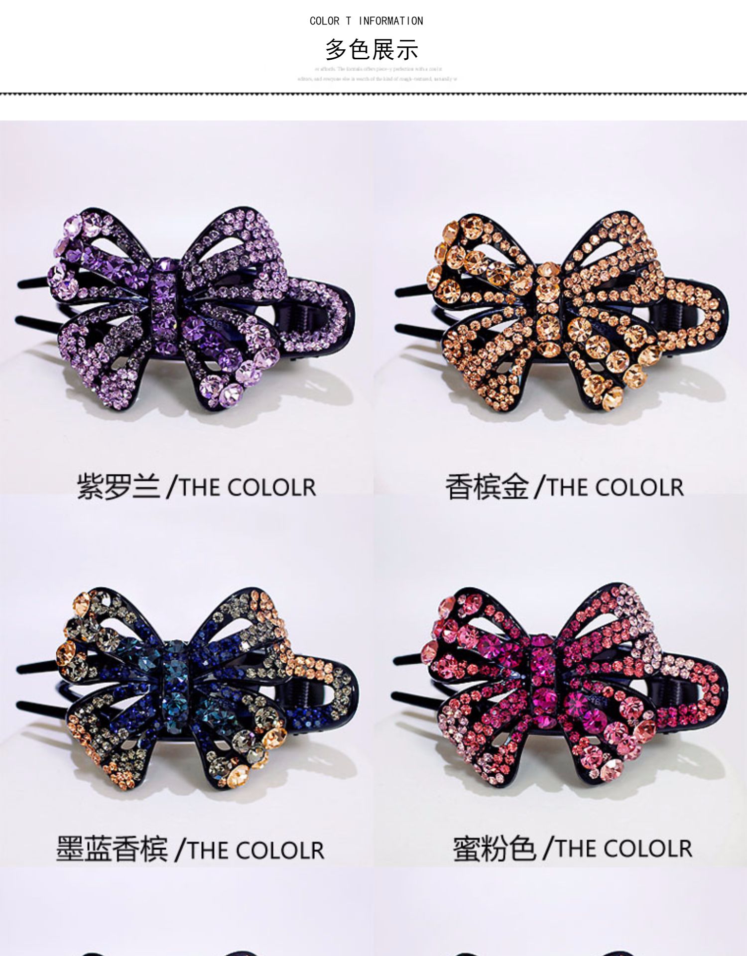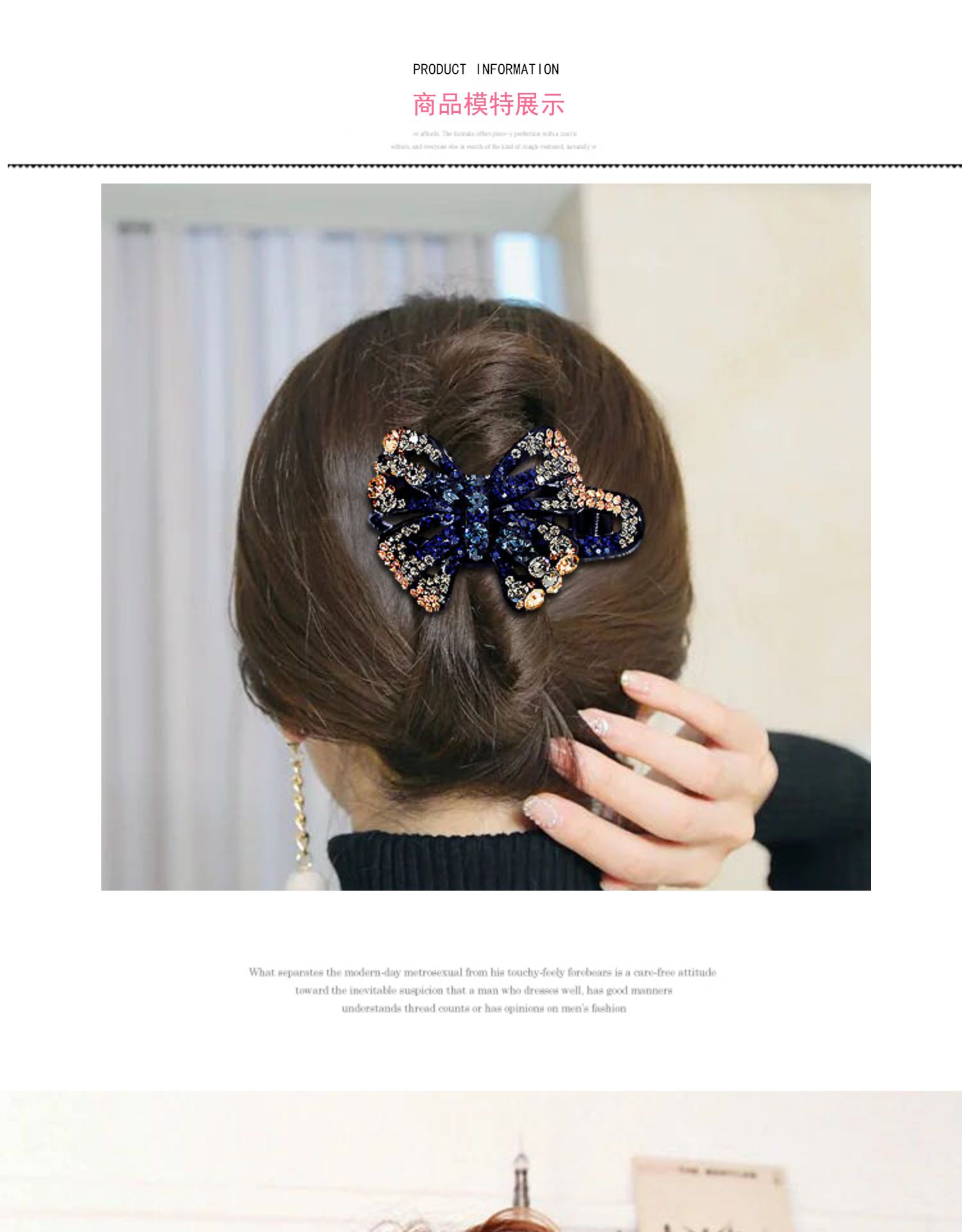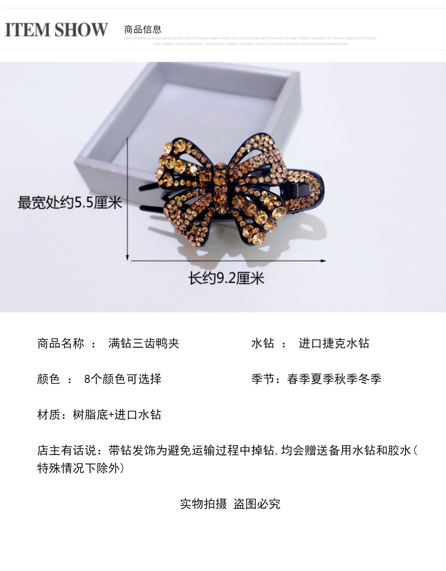 韓國水鉆發飾 韓式大號鴨嘴夾盤發發夾蝴蝶結盤頭夾子馬尾頭飾品1入