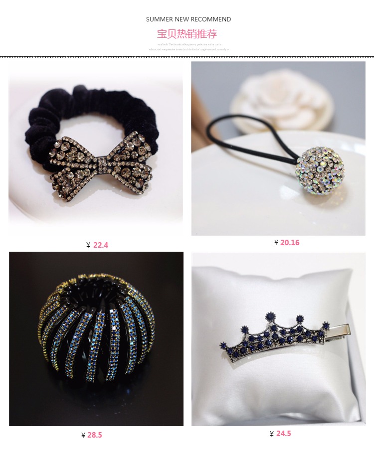 韓國頭飾飾品水晶球發繩頭圈女式扎頭發橡皮筋黑色高彈力頭繩發飾1入