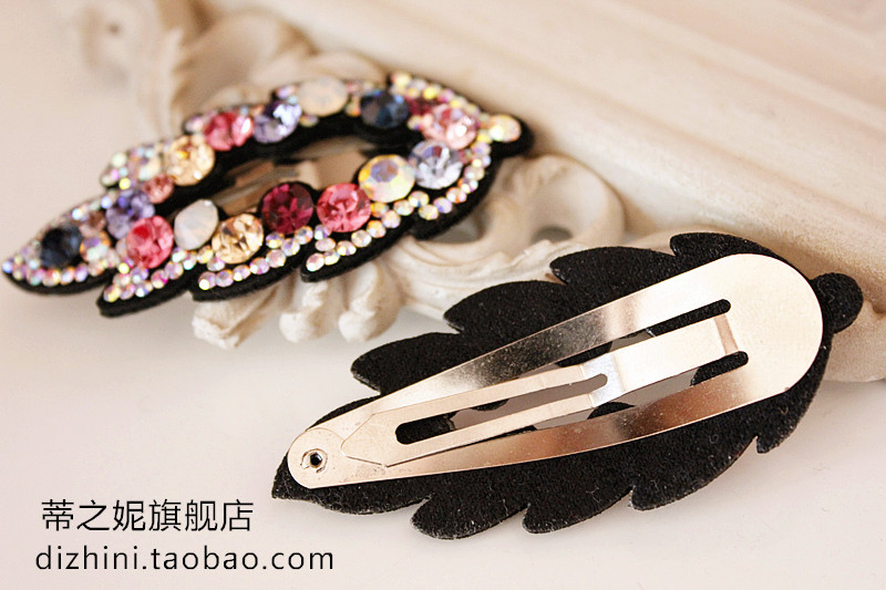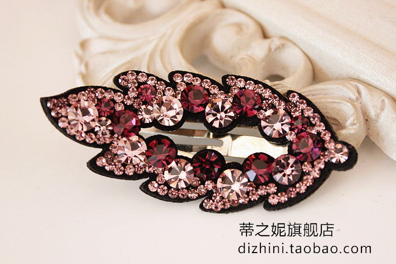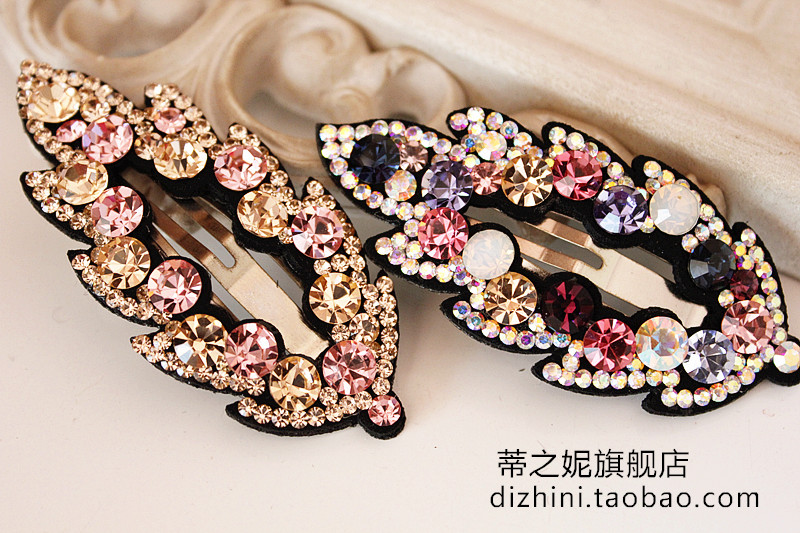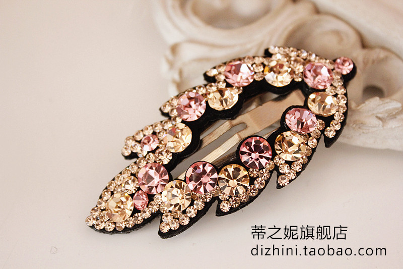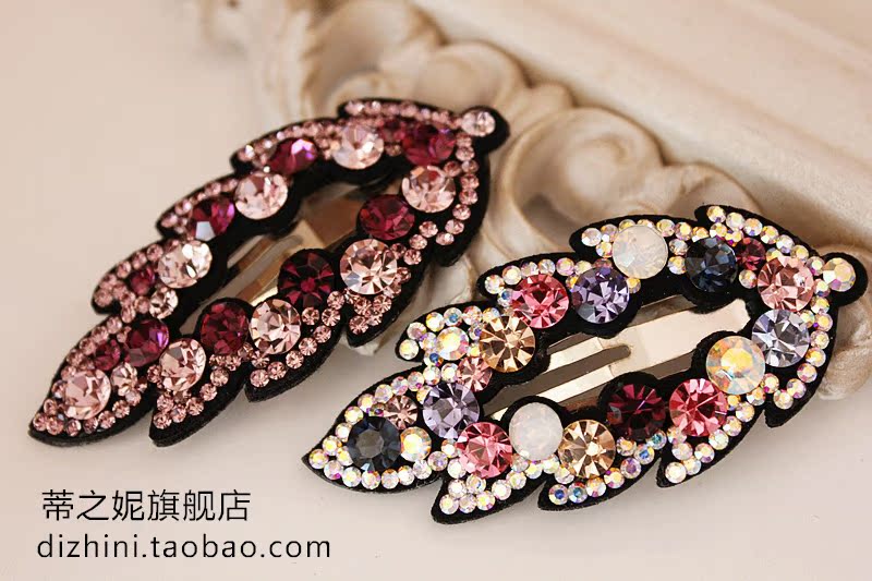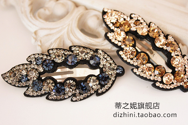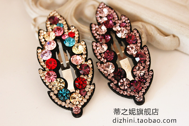2017年韓國新款發飾 奧鉆水晶樹葉皮質滿鉆BB夾邊夾韓式發夾正品1入