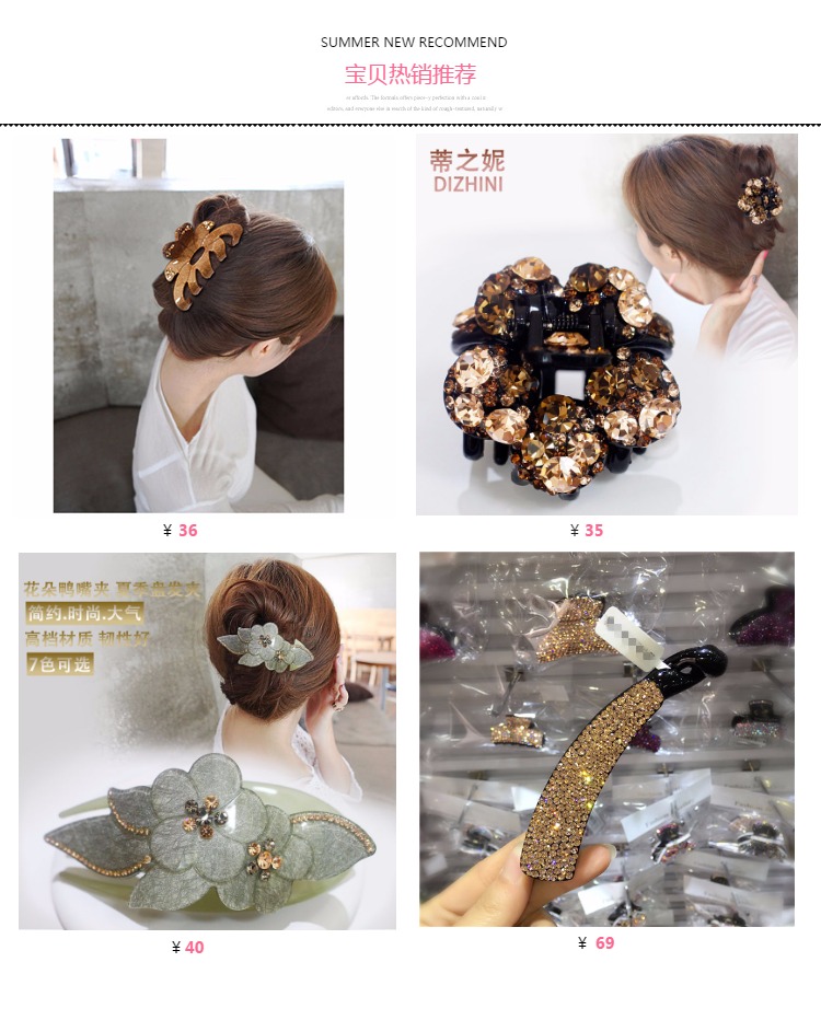 韓國水鉆發飾飾品大號抓夾發夾馬尾夾頭飾媽媽發卡盤發發抓發卡子1入