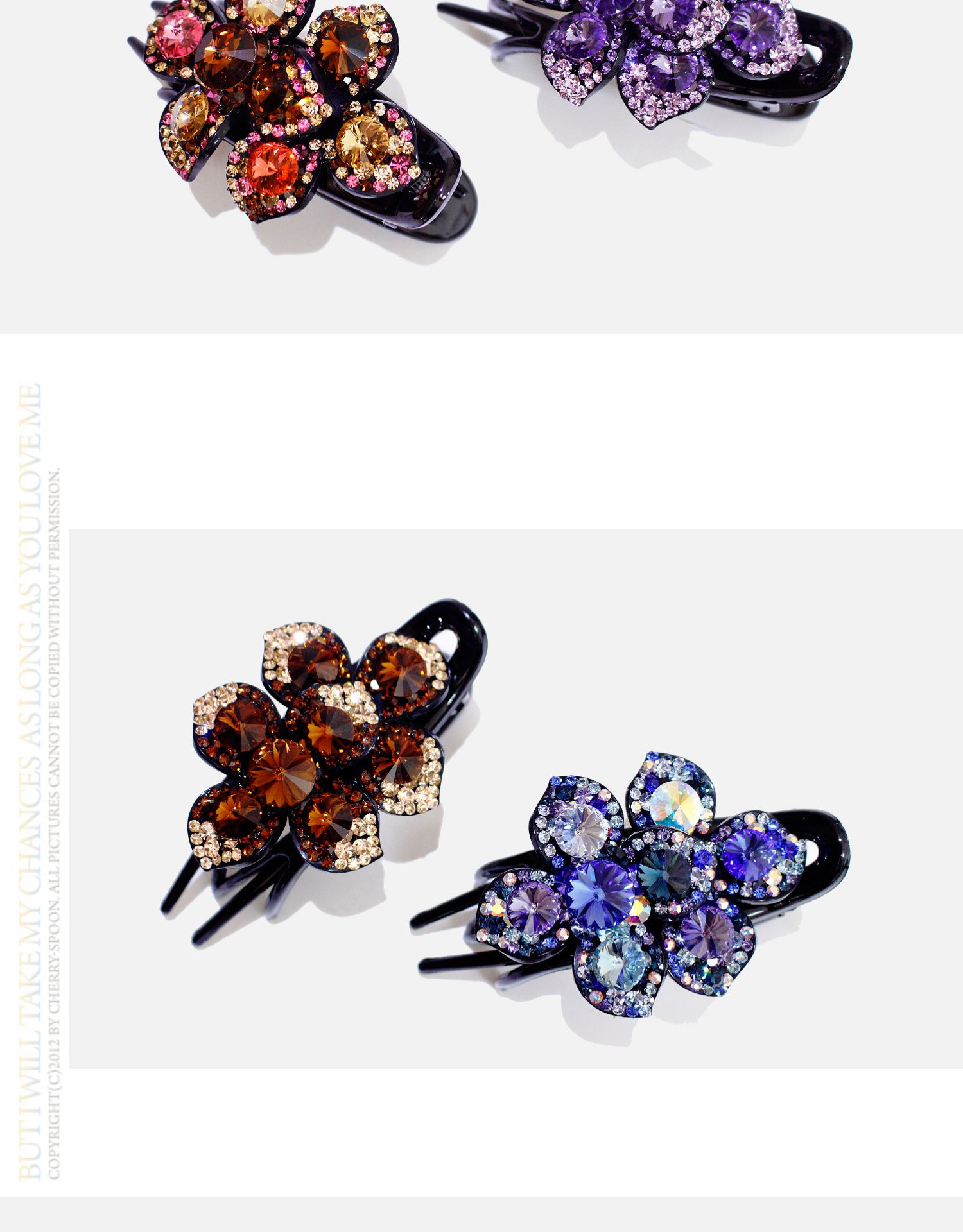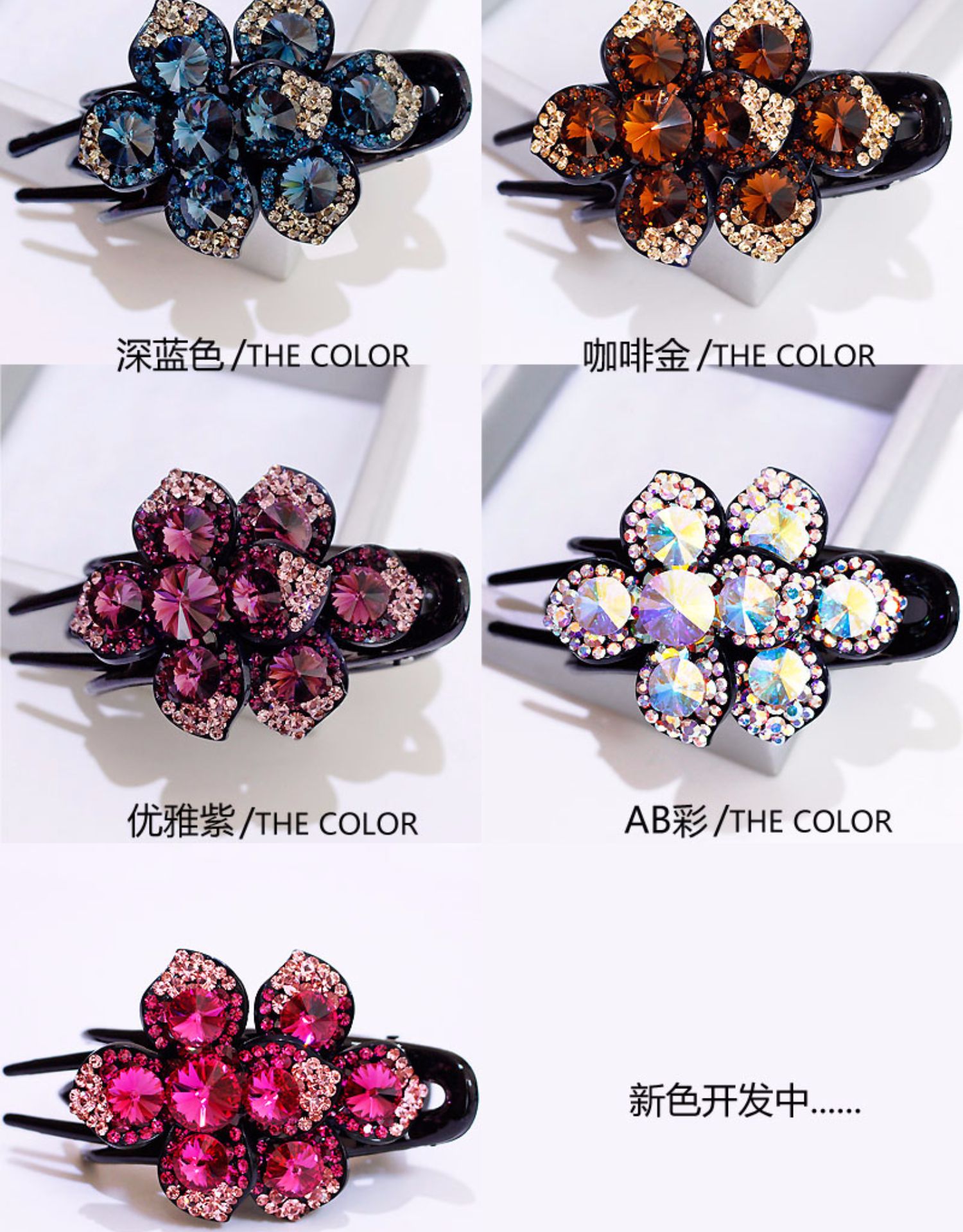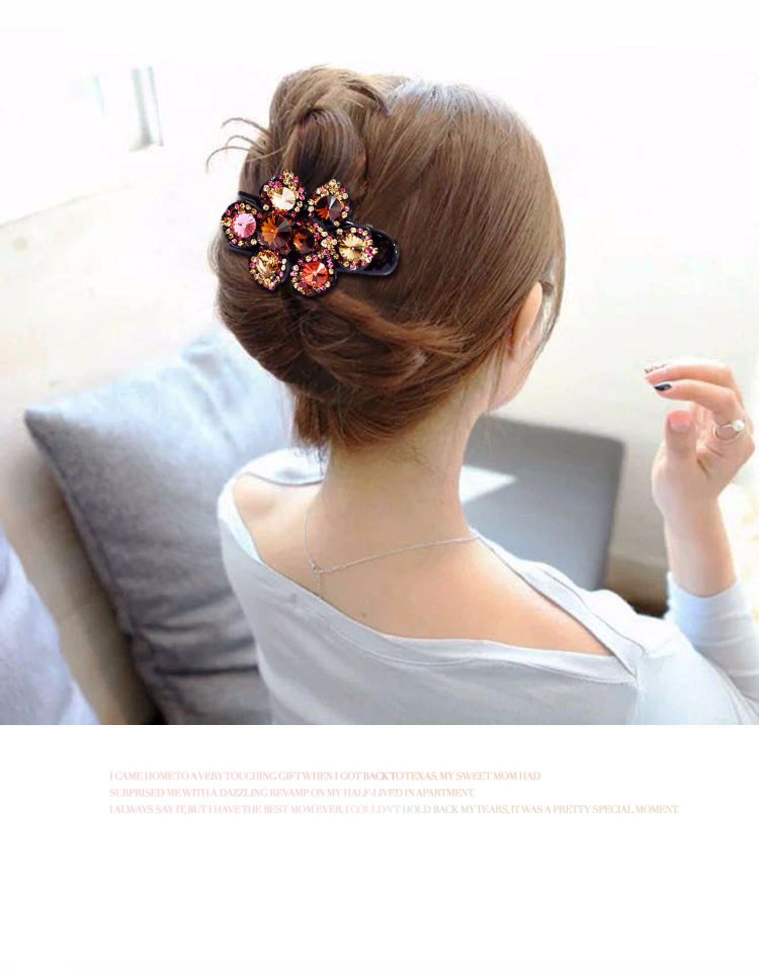 高檔水鉆鴨嘴夾韓國施家水晶盤發發夾三齒夾發卡花朵媽媽盤頭發飾1入