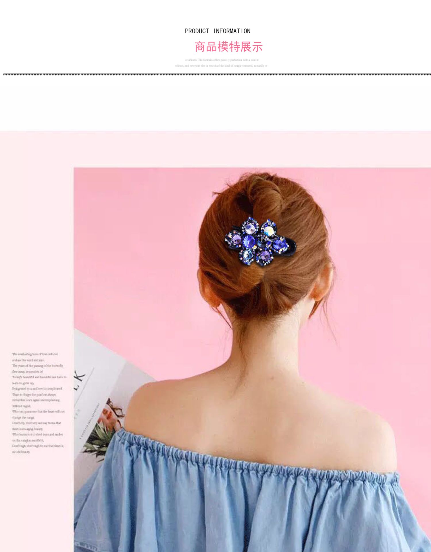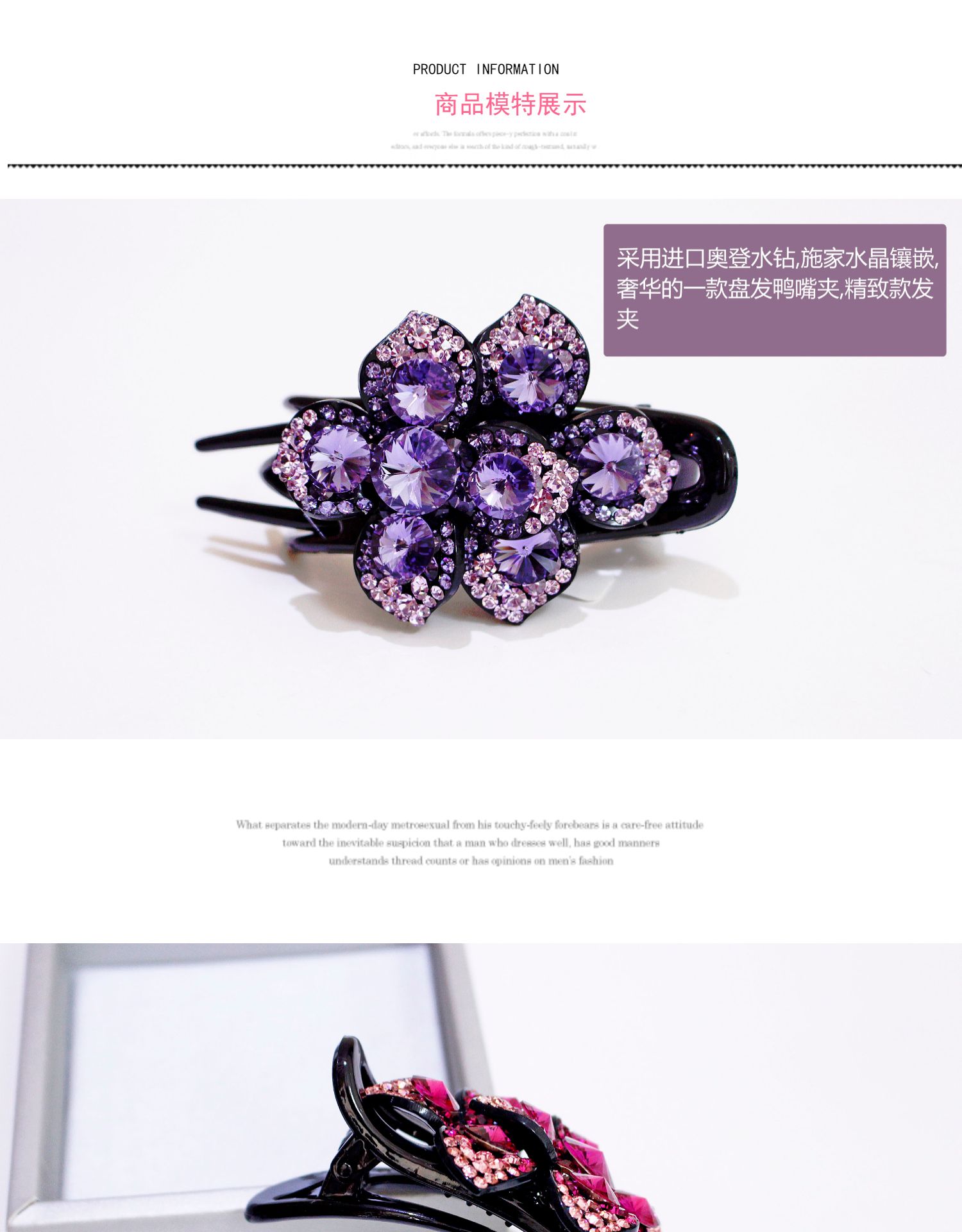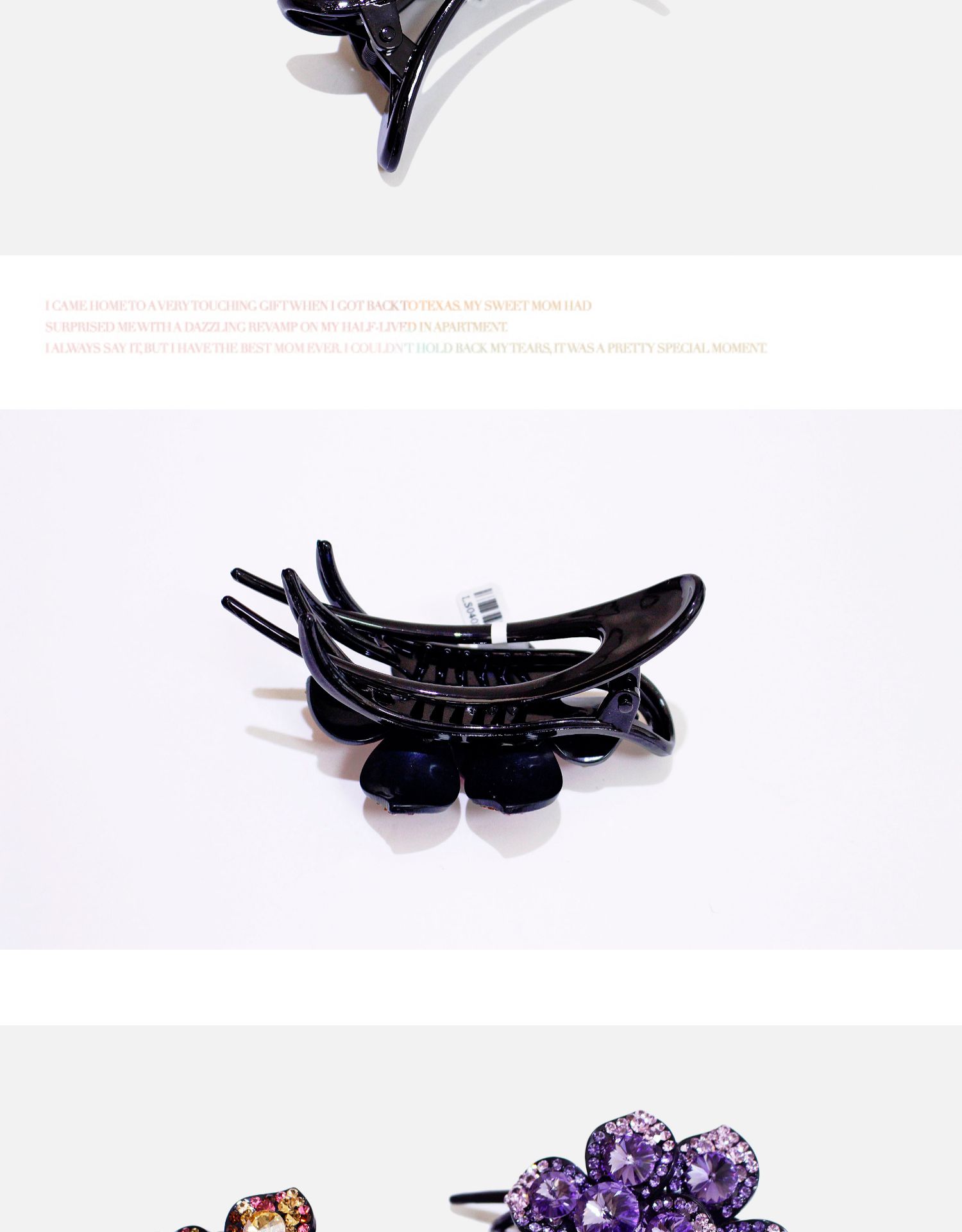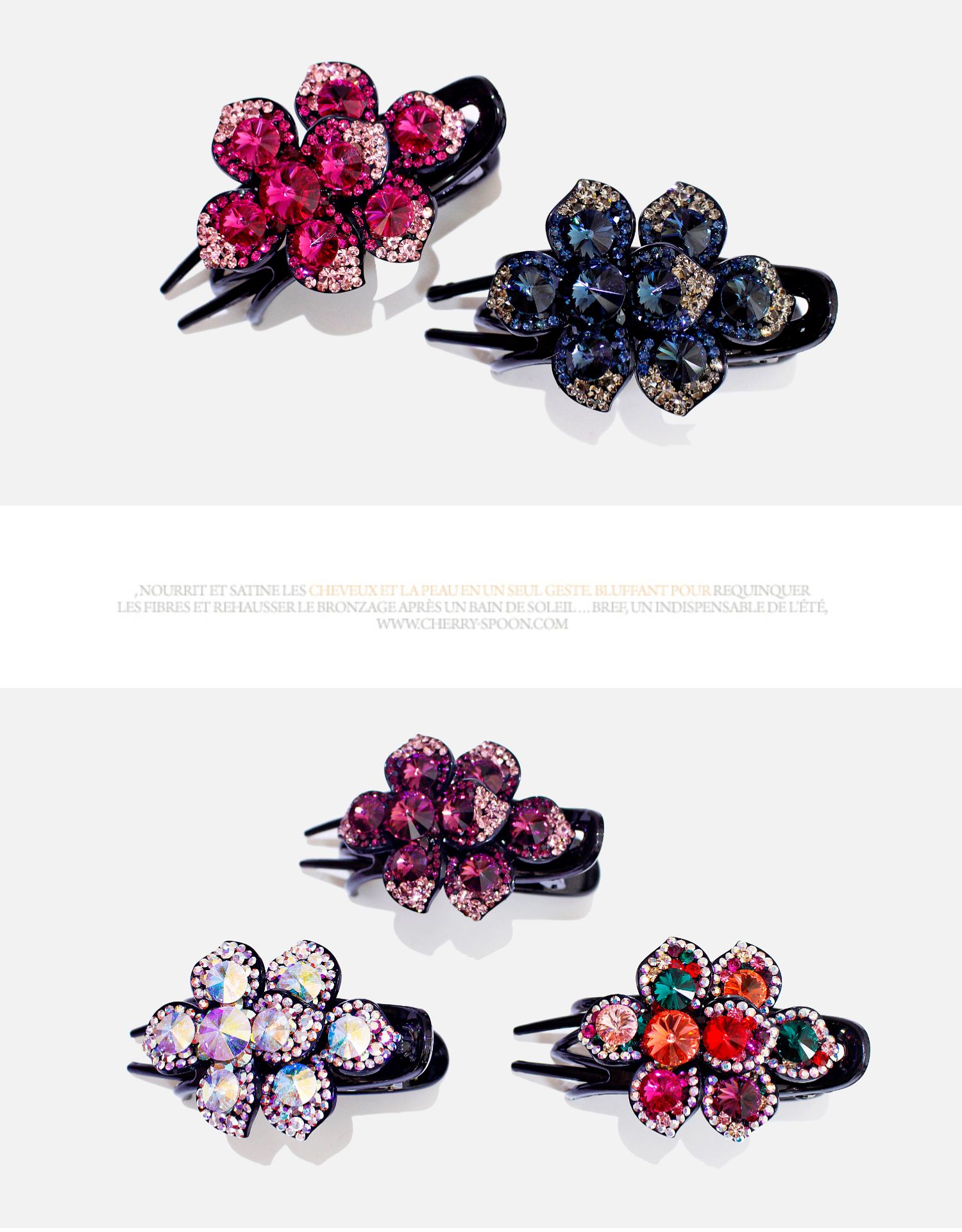 高檔水鉆鴨嘴夾韓國施家水晶盤發發夾三齒夾發卡花朵媽媽盤頭發飾1入