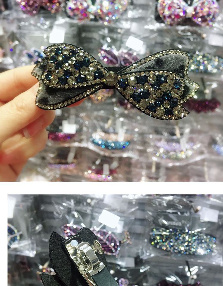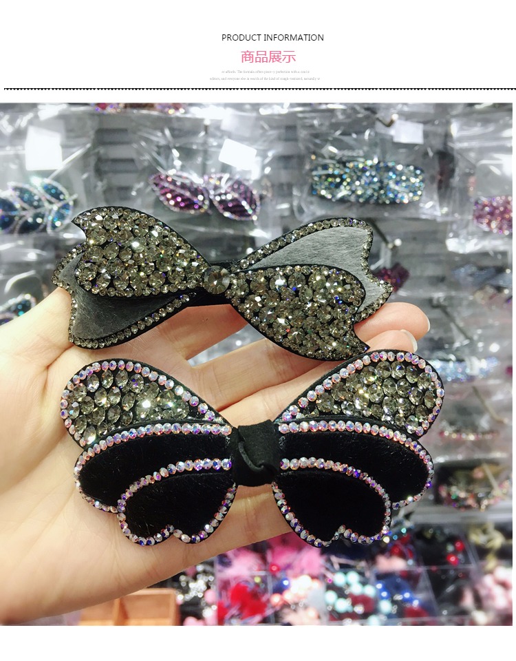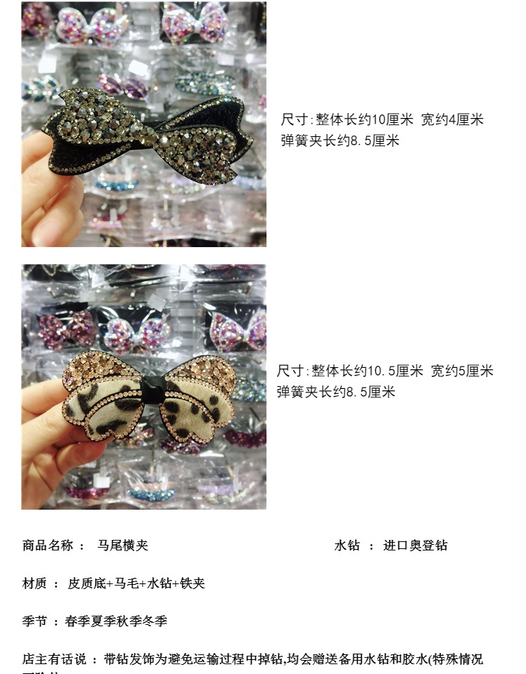 韓版水鉆發飾飾品韓式馬毛橫夾女式頂夾彈簧夾蝴蝶結馬尾發卡頭飾1入