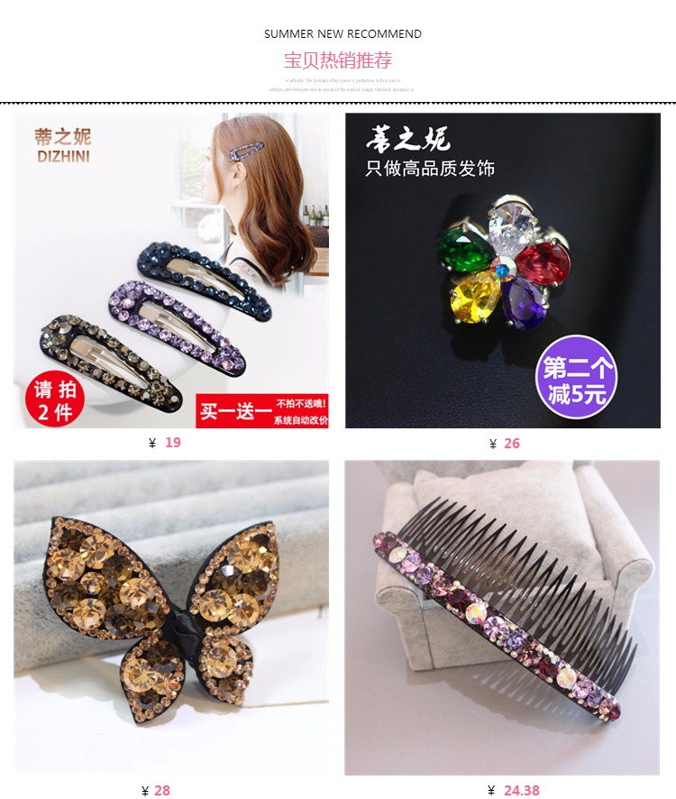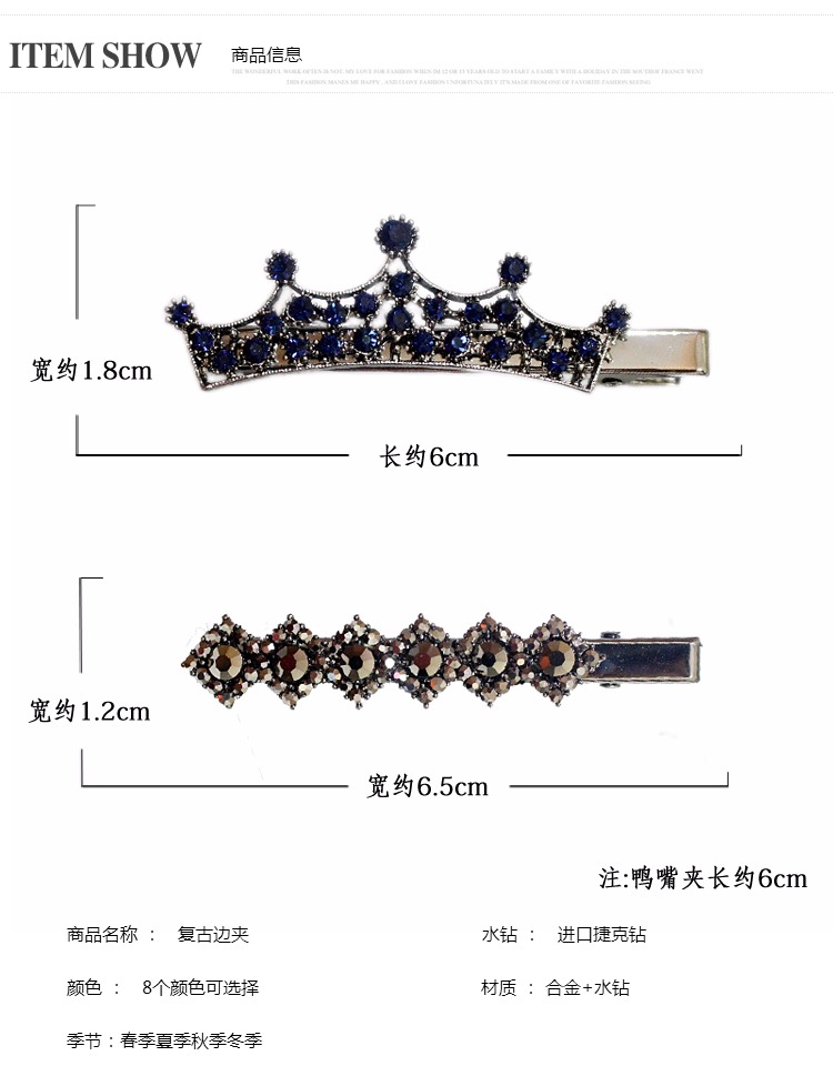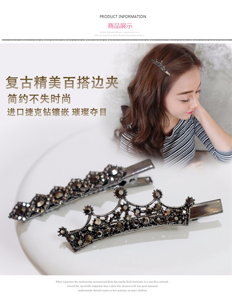 買一送一韓國復古發夾飾品韓版水鉆邊夾小號鴨嘴夾劉海夾發卡頭飾1入
