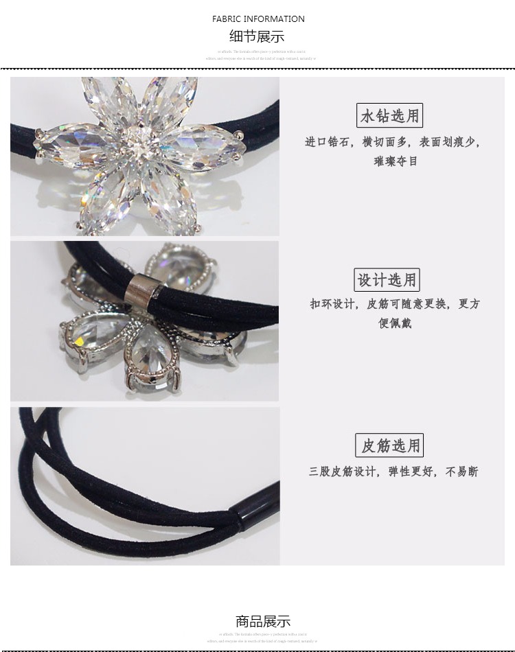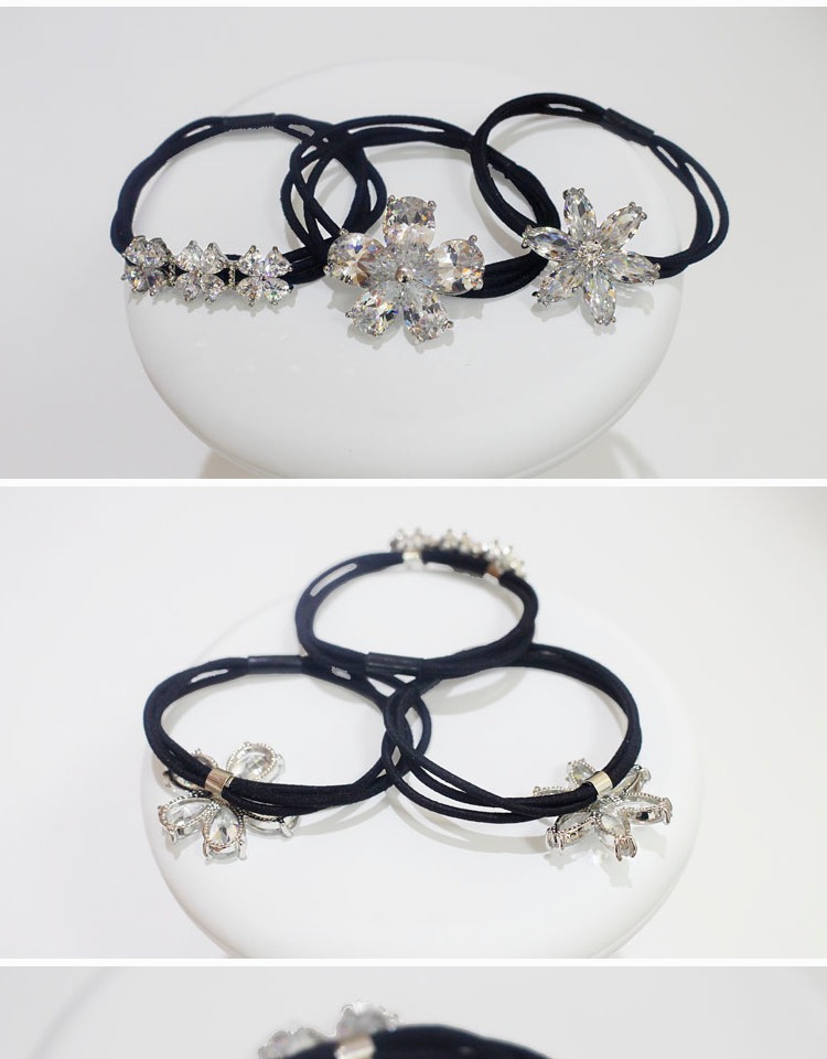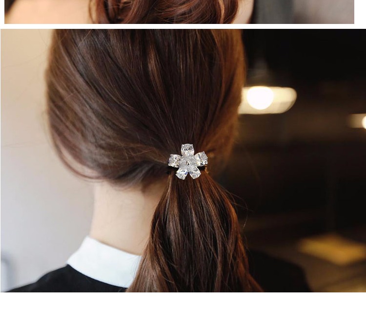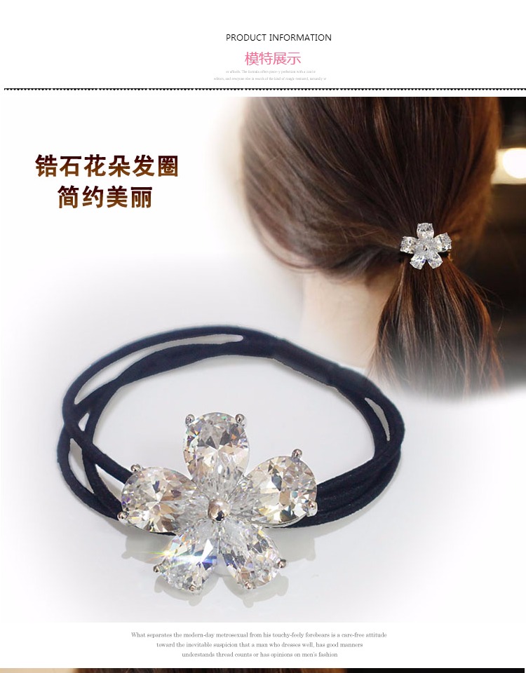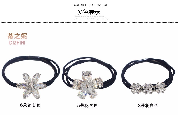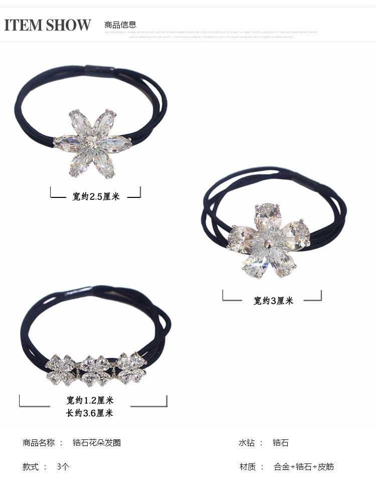 韓版鋯石發圈頭飾品韓國花朵扎頭繩像皮筋簡約扎頭發頭花馬尾發飾1入
