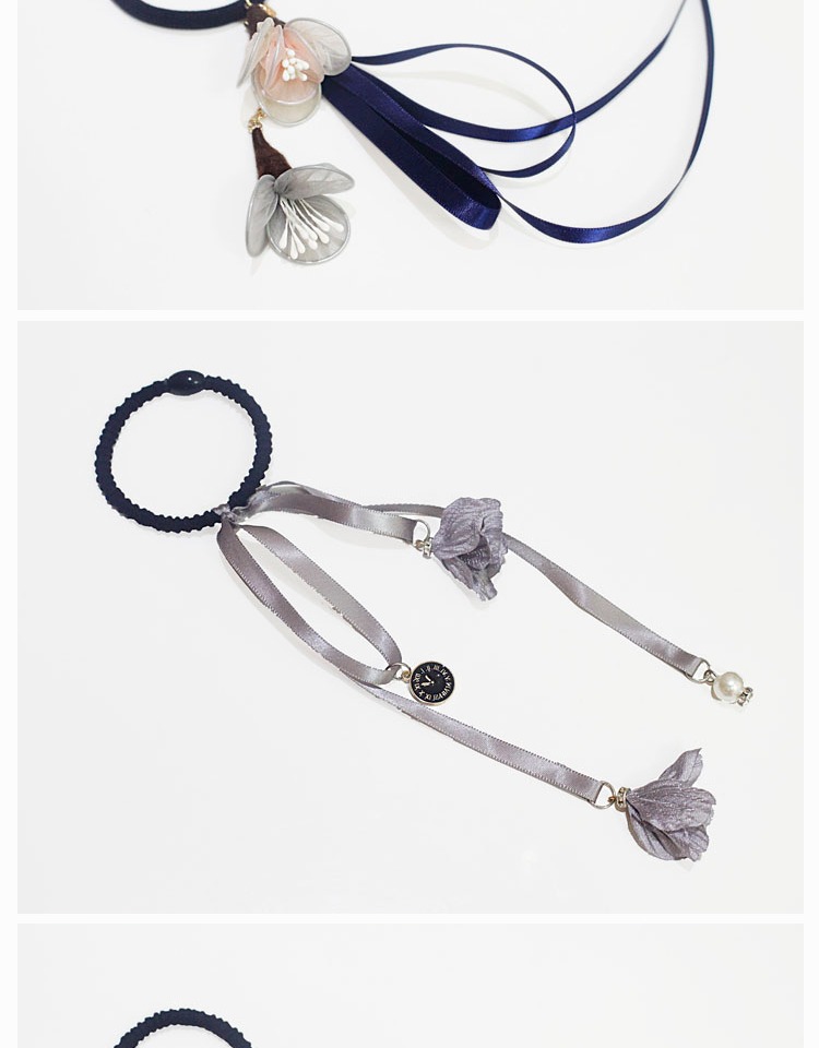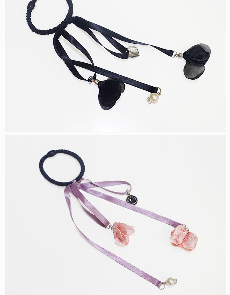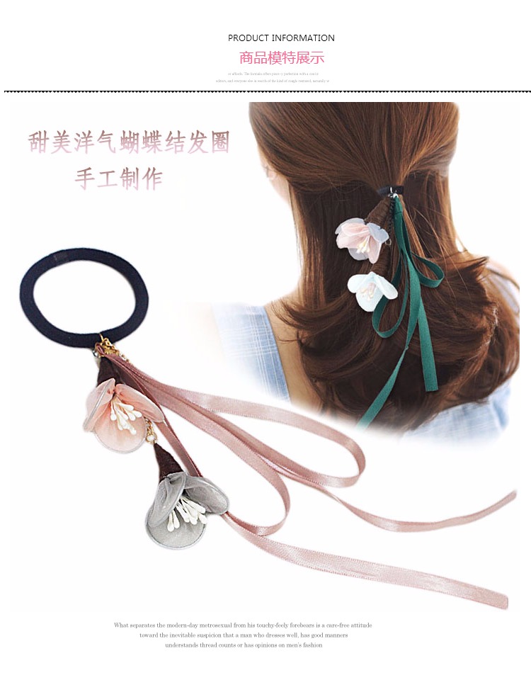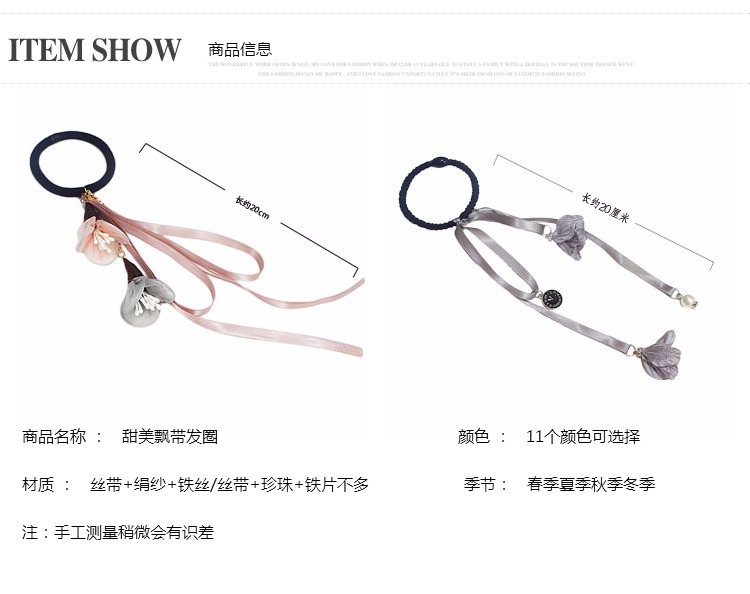韓國發飾品韓版飄帶發圈絲帶橡皮筋花朵發繩甜美扎頭繩馬尾辮頭飾1入