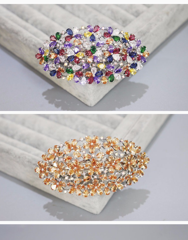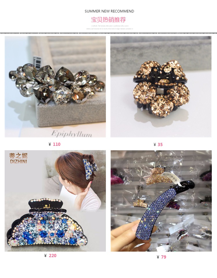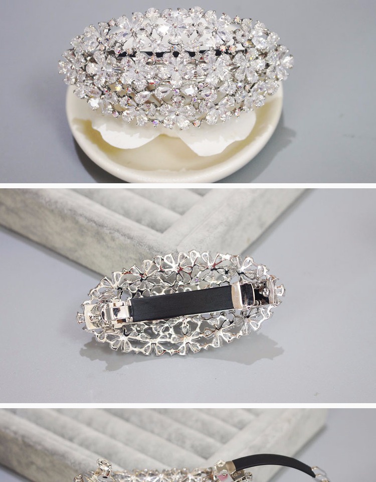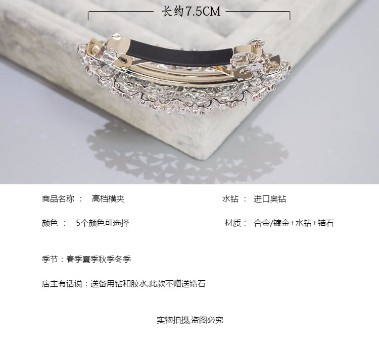 韓國發飾品 日韓鋯石小花簡約橫夾頂夾彈簧夾發夾水晶馬尾扣頭飾1入