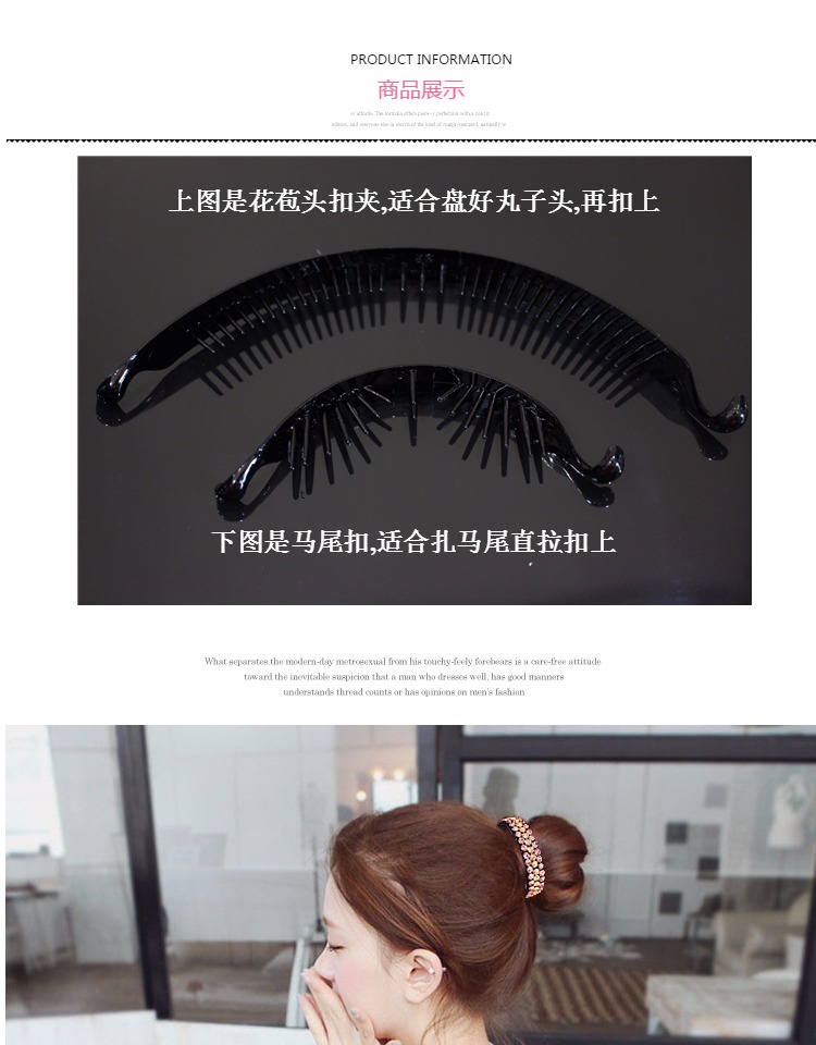 韓版進口奧登水鉆花苞頭扣 丸子頭盤發香蕉夾馬尾扣發頭飾品1入