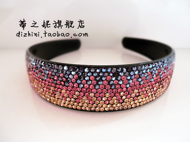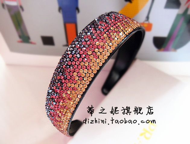 韓國新款發飾品 捷克水鉆漸變色發箍頭箍高檔發卡寬邊韓式發夾子1入