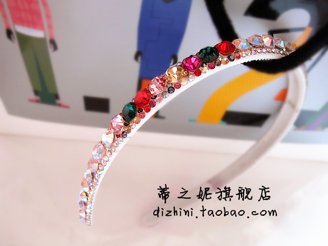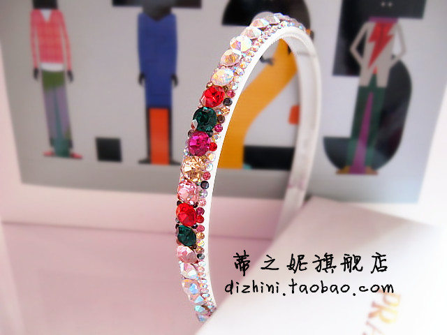 韓國原版 奢華閃奧地利水晶單排大水晶滿鉆發箍頭箍帶齒發卡夾1入