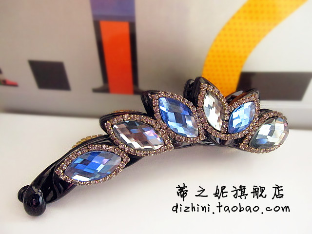 韓國發飾品中號香蕉夾 水鉆大盤發水晶豎夾馬尾夾女頭飾 扭夾發卡1入