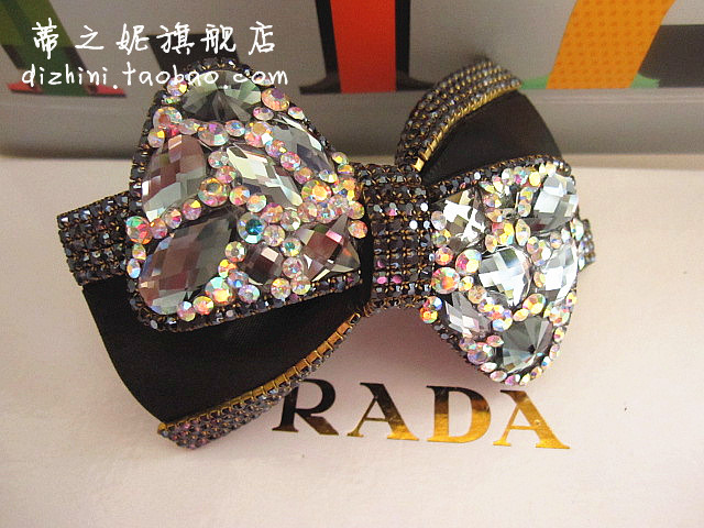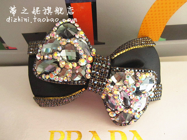 韓國進口新款發飾黑色蝴蝶結水晶水鉆頂夾發夾女頭飾一字夾彈簧夾1入